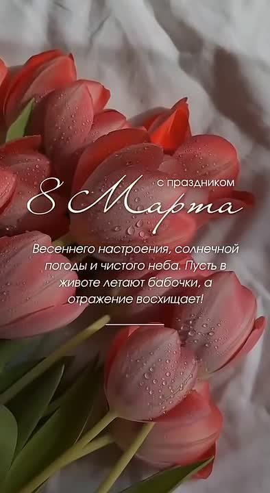Пусть ваши глаза неизменно излучают свет счастья и нежности, пусть тревоги и волнения останутся в прошлом, а Международный женский день 8 марта приумножит радостное настроение и исполнит все заветные желания!