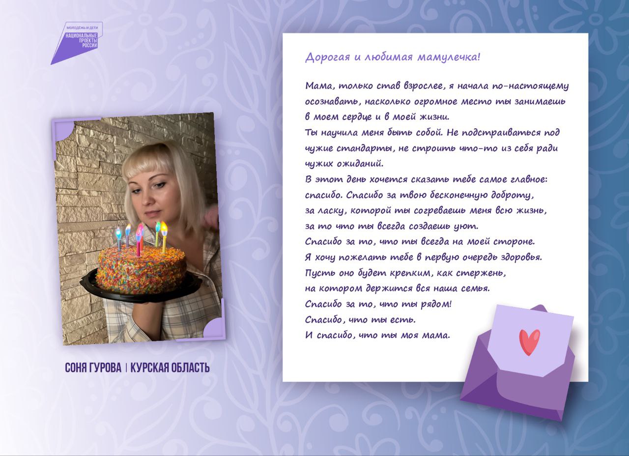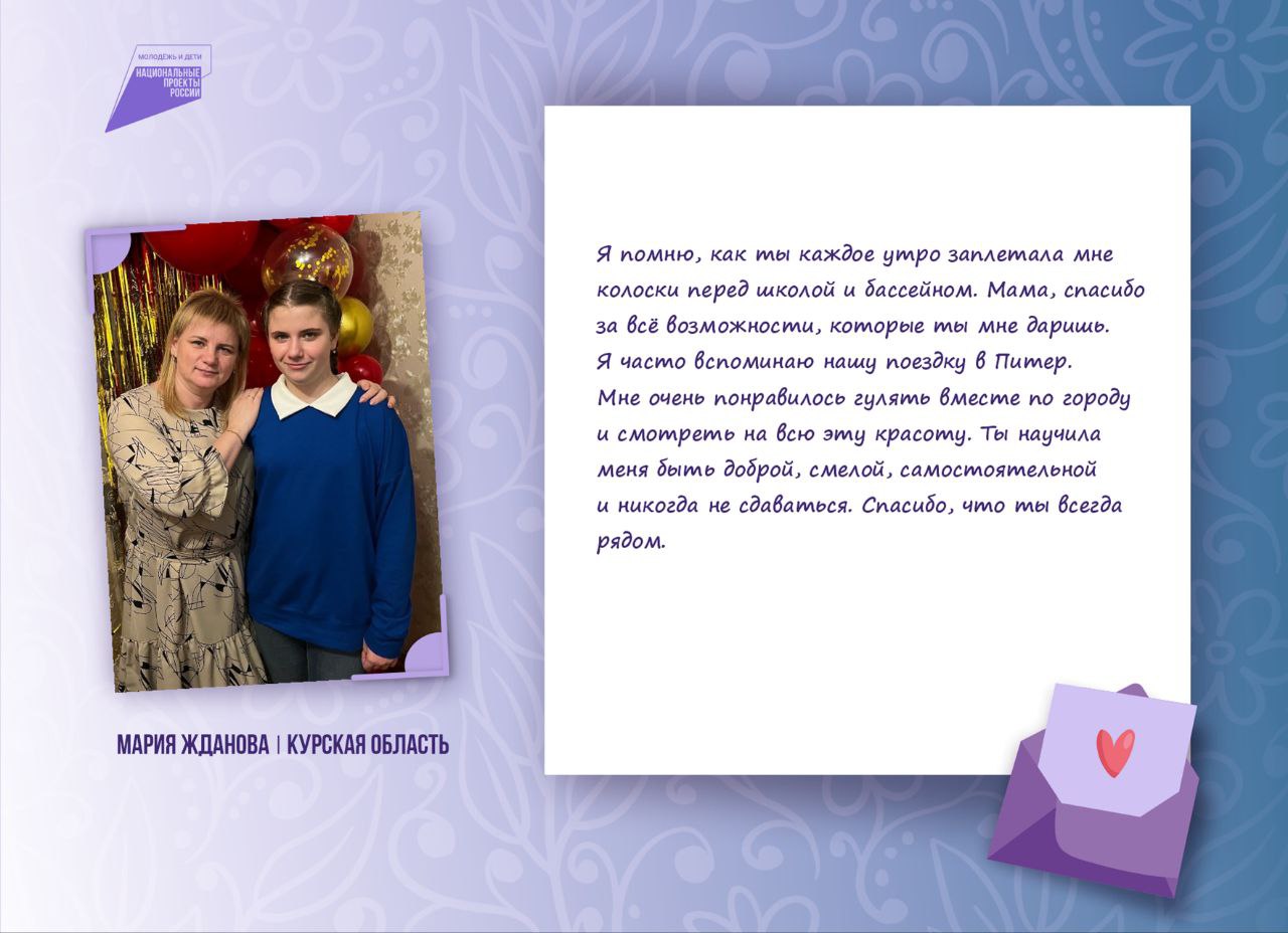 К Международному женскому дню участники нацпроекта «Молодёжь и дети» Курской области написали письма своим мамам.