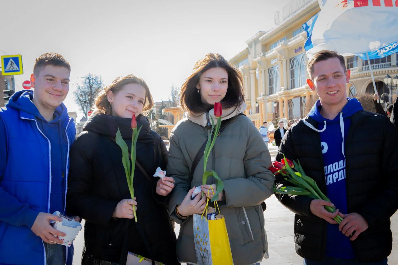 Строки звучащей на Театральной площади песни «Дарите женщинам цветы», которую задорно пели ребята из «Молодой Гвардии», как никогда напоминают в этот день, что иногда небольшое внимание может отозваться большим откликом в сердце девочки, девушки или женщины и оставить светлые яркие воспоминания о простых, но очень важных вещах.