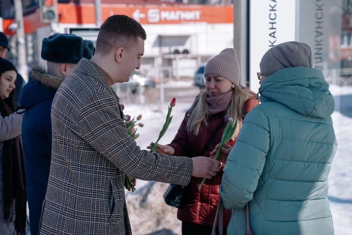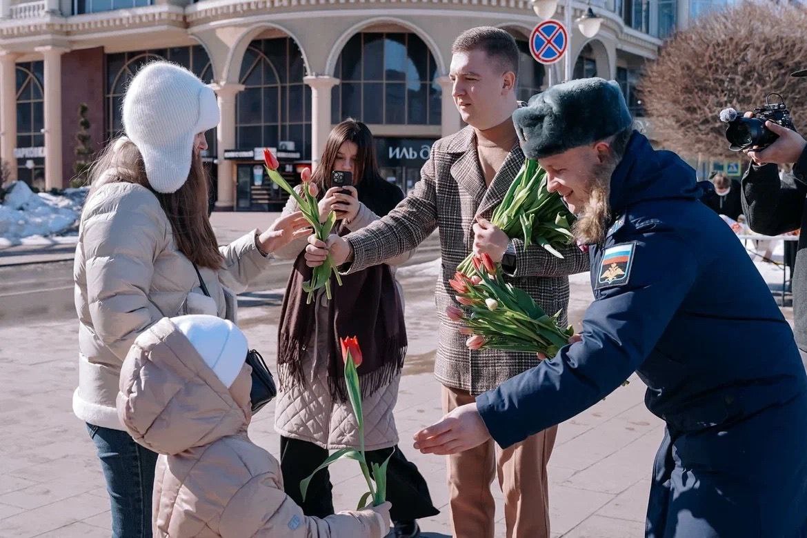 Волонтеры «Добро.Центра» вместе с председателем комитета молодежной политики Курской области Максимом Щедриным и участником программы «Курск.Герои!» Андреем Милютиным в Международный женский день присоединились к акции «Вам, Любимые!».