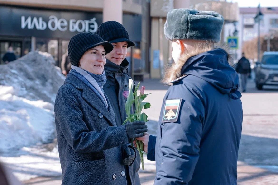 Сердечные слова приветствия в адрес женщин звучали также на Театральной площади Курска, где к акции присоединились представители областной Думы. Жительницы города принимали цветы, поздравления и искренние пожелания. #молодежь46