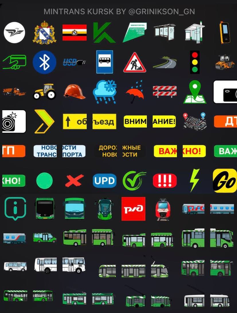 Министерство транспорта и автомобильных дорог Курской области представляет собственный набор фирменных эмодзи. Яркие изображения, отражают основные виды общественного транспорта региона, номера маршрутов и не только.