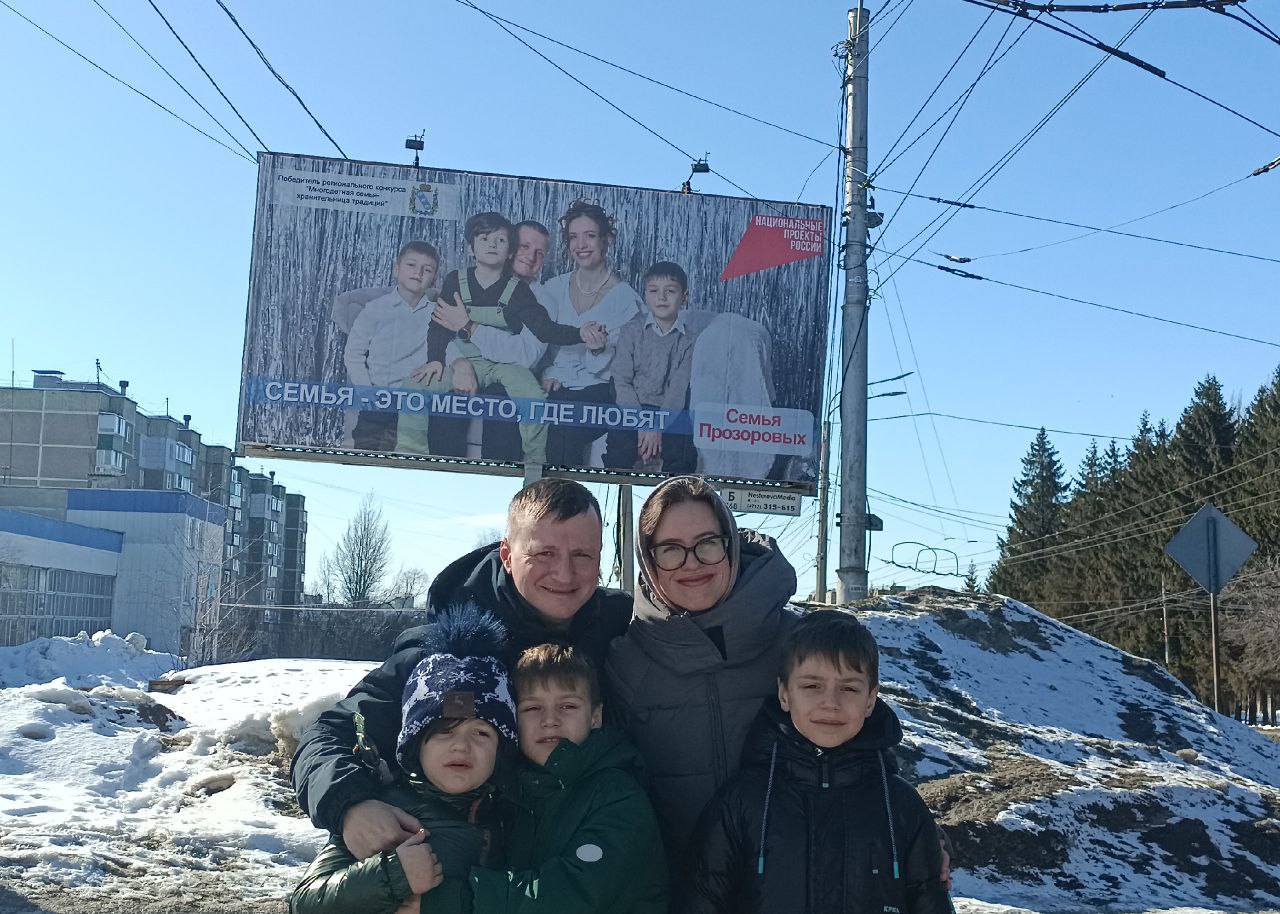 Ещё одна победа у Солнцевской семьи. Многодетная семья Прозоровых Эдуарда Андреевича и Марины Александровны охотно участвует в различных мероприятиях, конкурсах областного и районного уровней. На счету Прозоровых немало побед! Баннер с фотографией семьи в прошлом году уже украшал областной центр. Победитель регионального конкурса "Многодетная семья- хранительница традиций" и в этом году заслужила право размещения баннера с семейной фотографией на одной из улиц г. Курска.