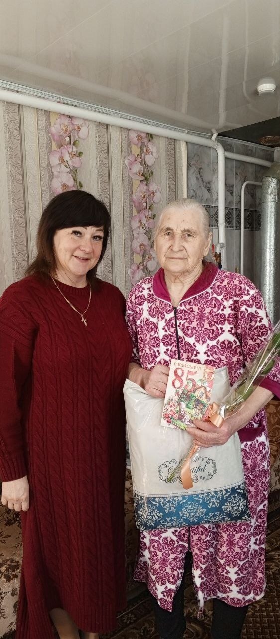 С 85 - летием именинницу поздравили представители Администрации и Совета ветеранов поселка Медвенка.