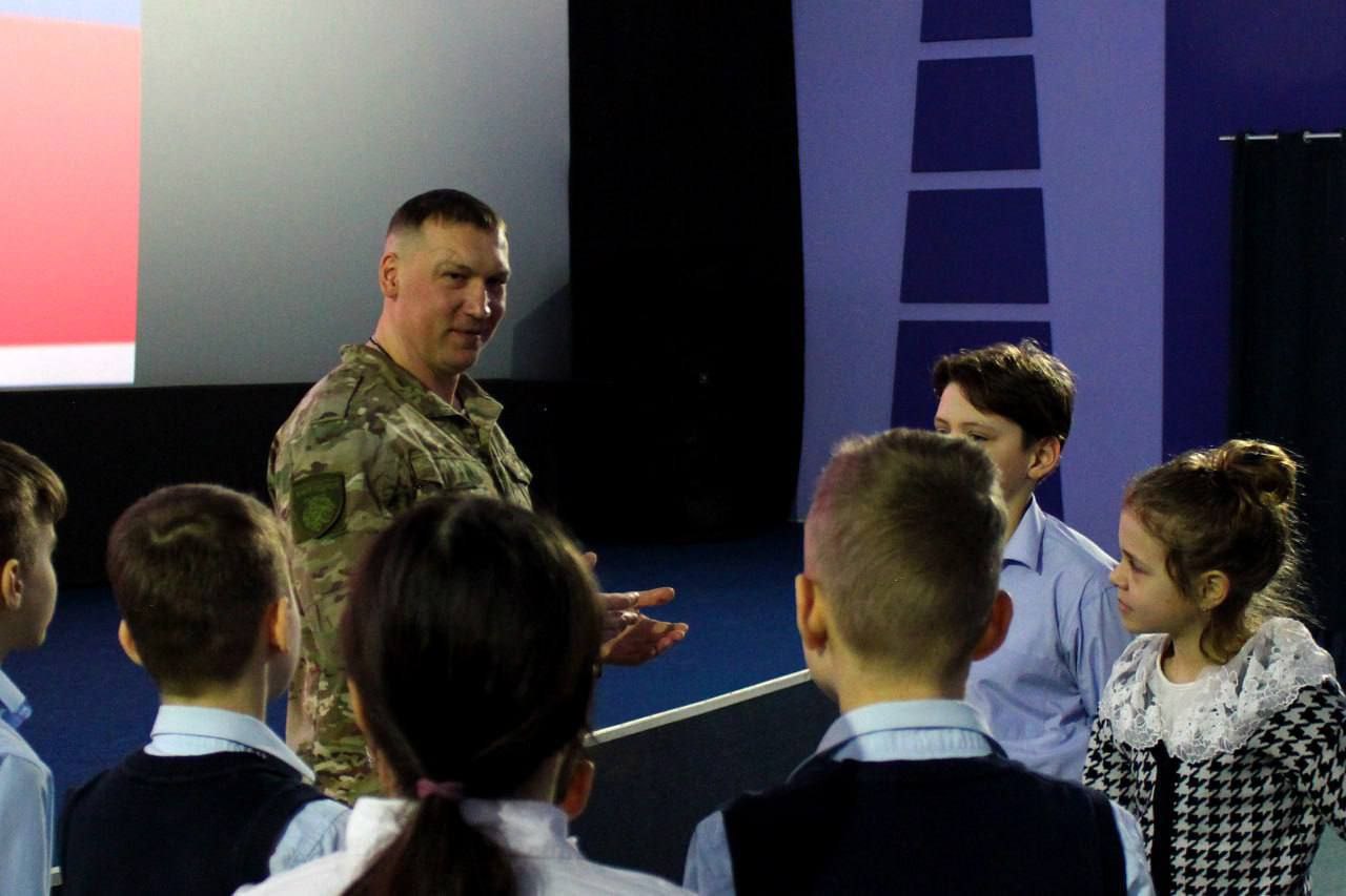 Доброволец разведроты бригады «БАРС-Курск» с позывным «Тайга» встретился с молодёжью, чтобы побеседовать на значимую тему: как не стать жертвой или пособником терроризма.