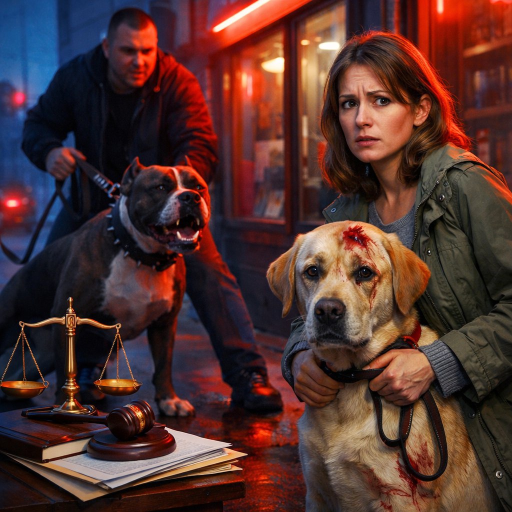 Рядом стоял мужчина со стаффом. Выяснилось, пес набросилась на лабрадора и покусал его.