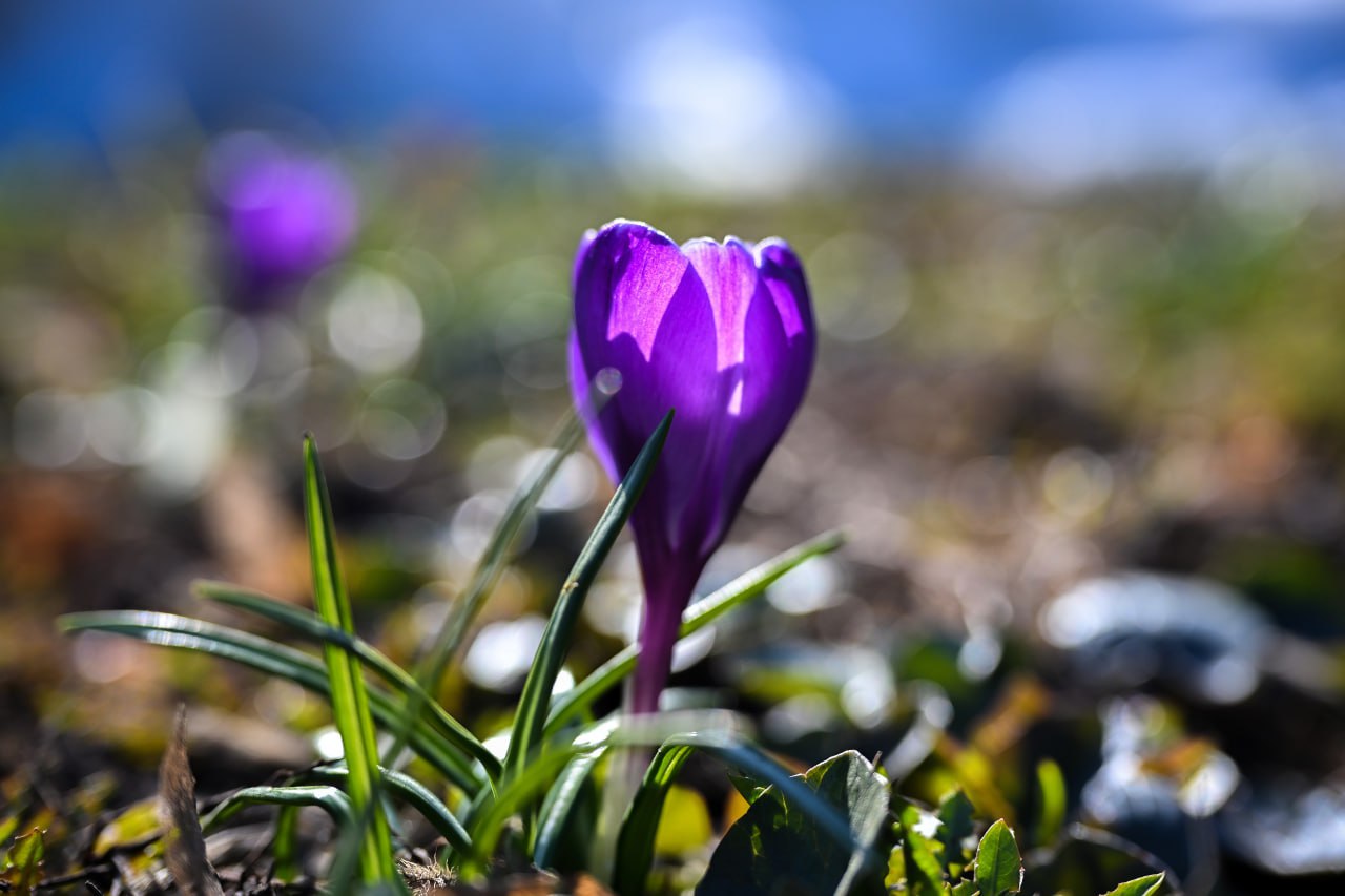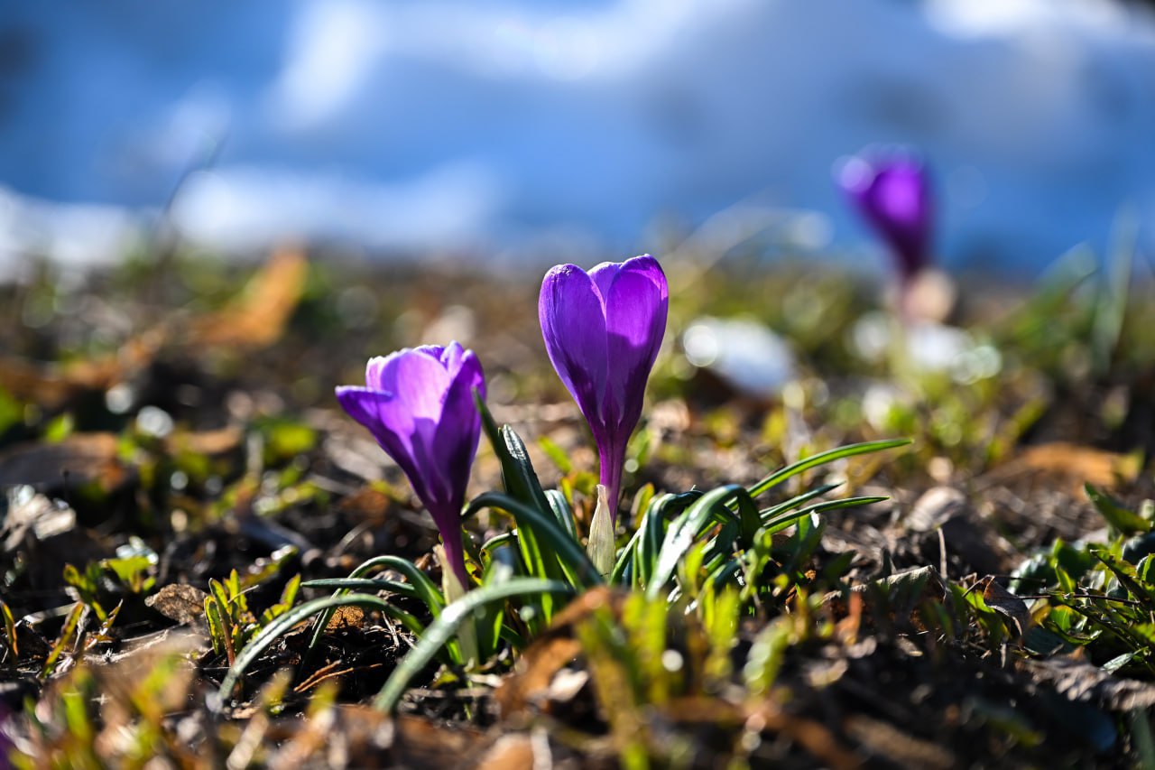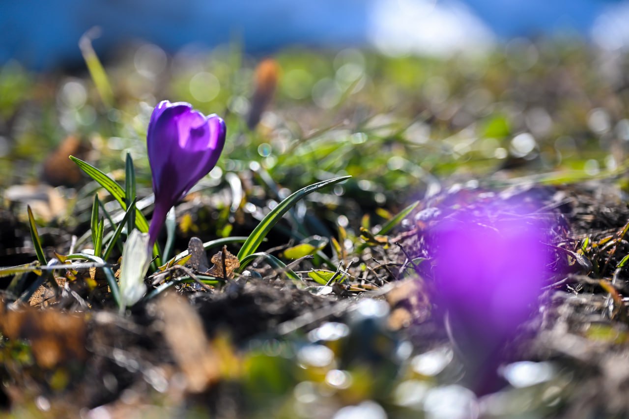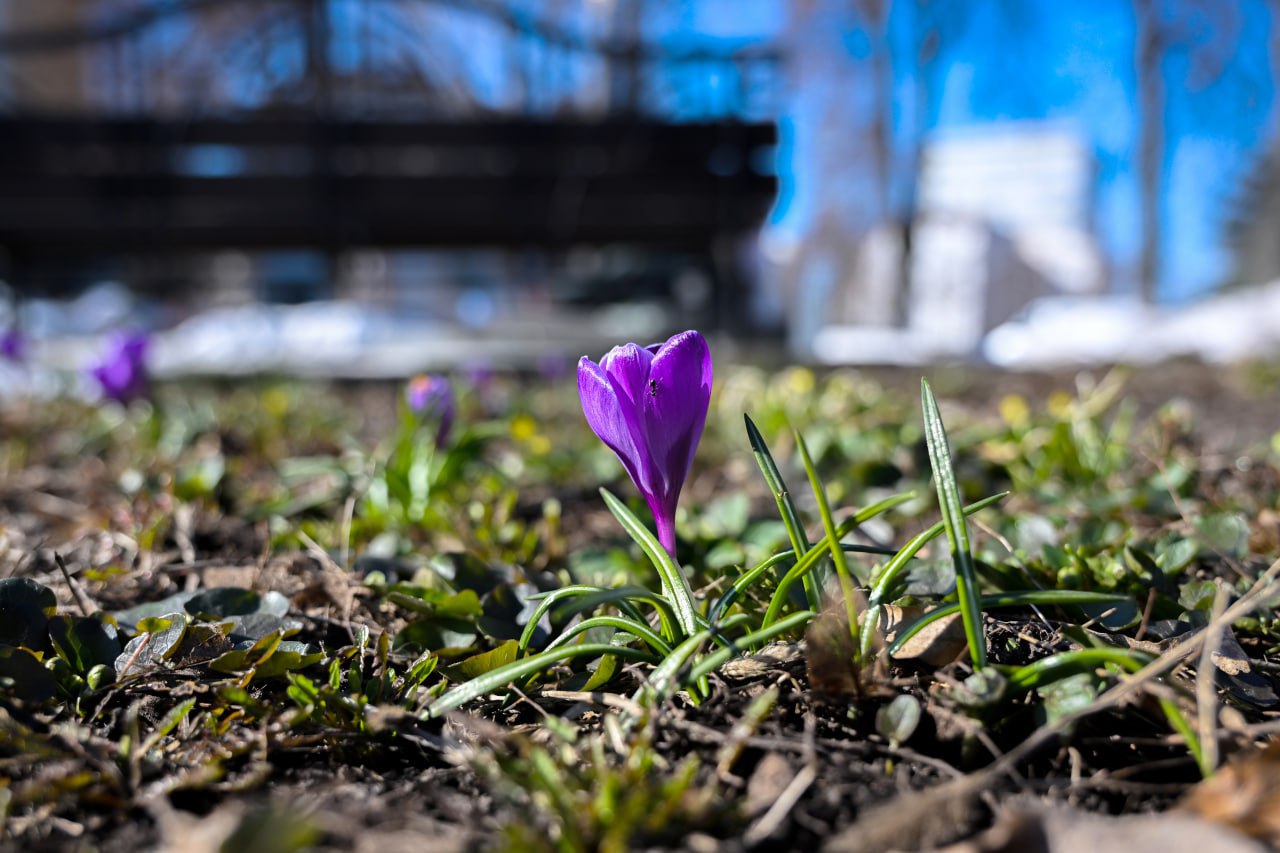 Первые крокусы распустились на улице Ленина в Курске - весна вступает в свои права