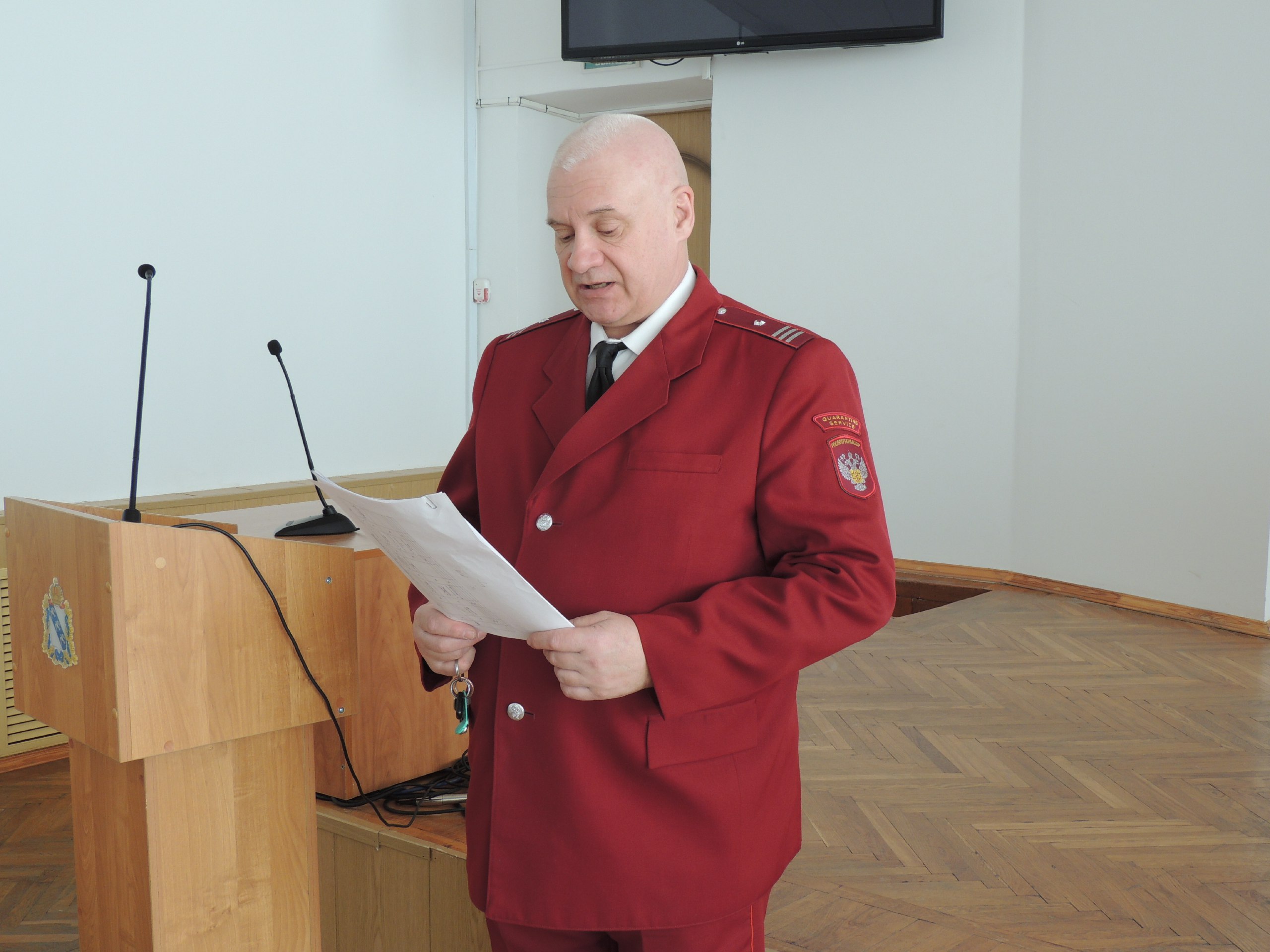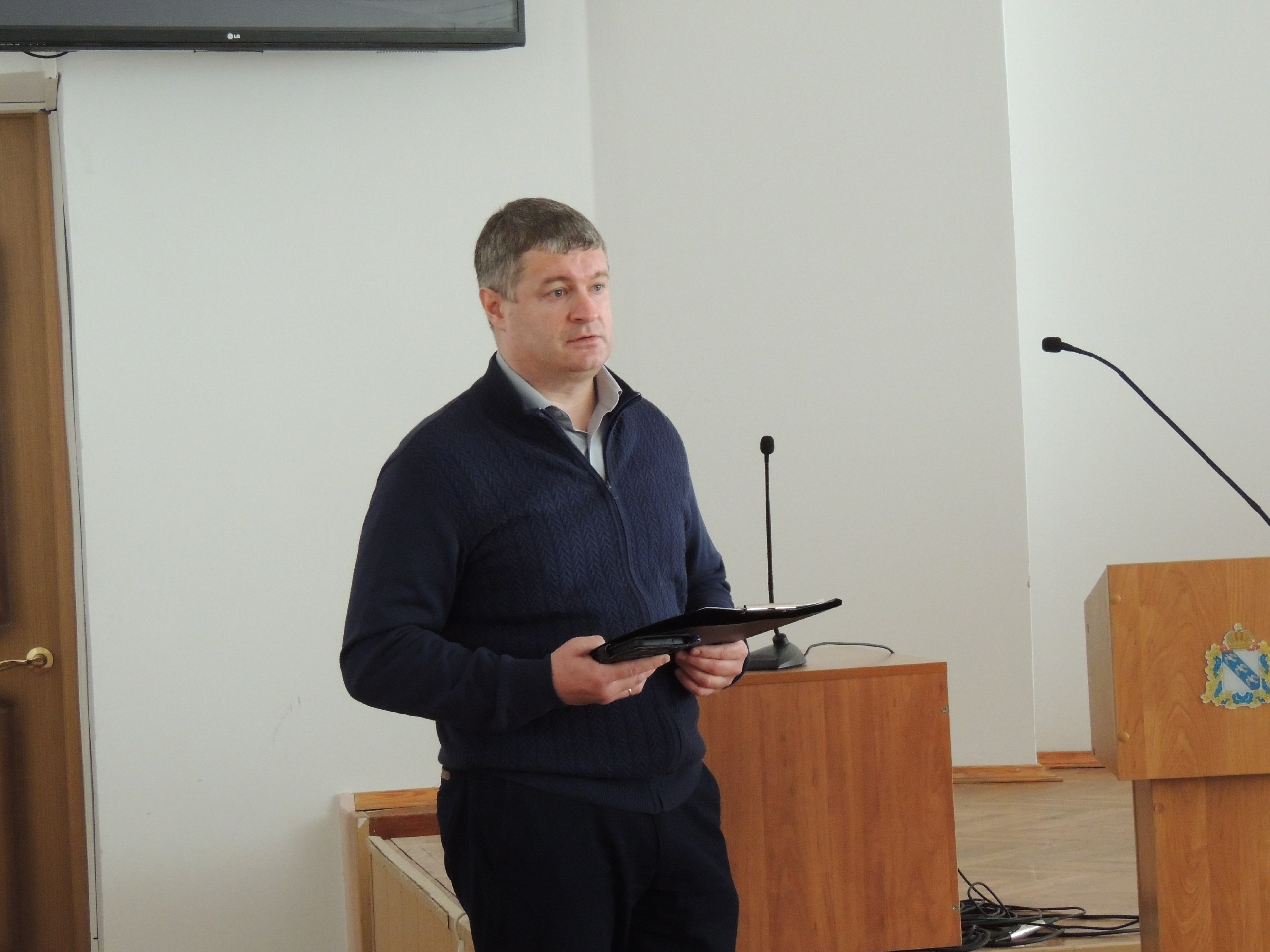 Начальник ОБУ «МВС №6» Александр Лыков выступил с докладом по вопросу о мероприятиях по профилактике и недопущению возникновения заболевания бешенством животных на территории Железногорского района.