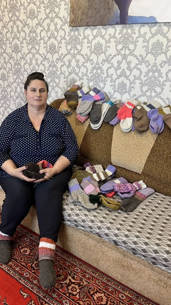 Сидя за спицами, она думает только об одном, чтобы наши ребята поскорее вернулись домой живыми и здоровыми. Собеседница отмечает, что, конечно, носки можно и купить, но они не заменят домашних, связанных с любовью и заботой, передающих атмосферу домашнего очага.