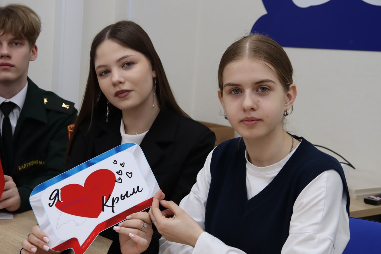 Курскую область представляли коллективы школ №№ 15, 46 и 47. Телемост посвящен Дню воссоединения Крыма с Россией.