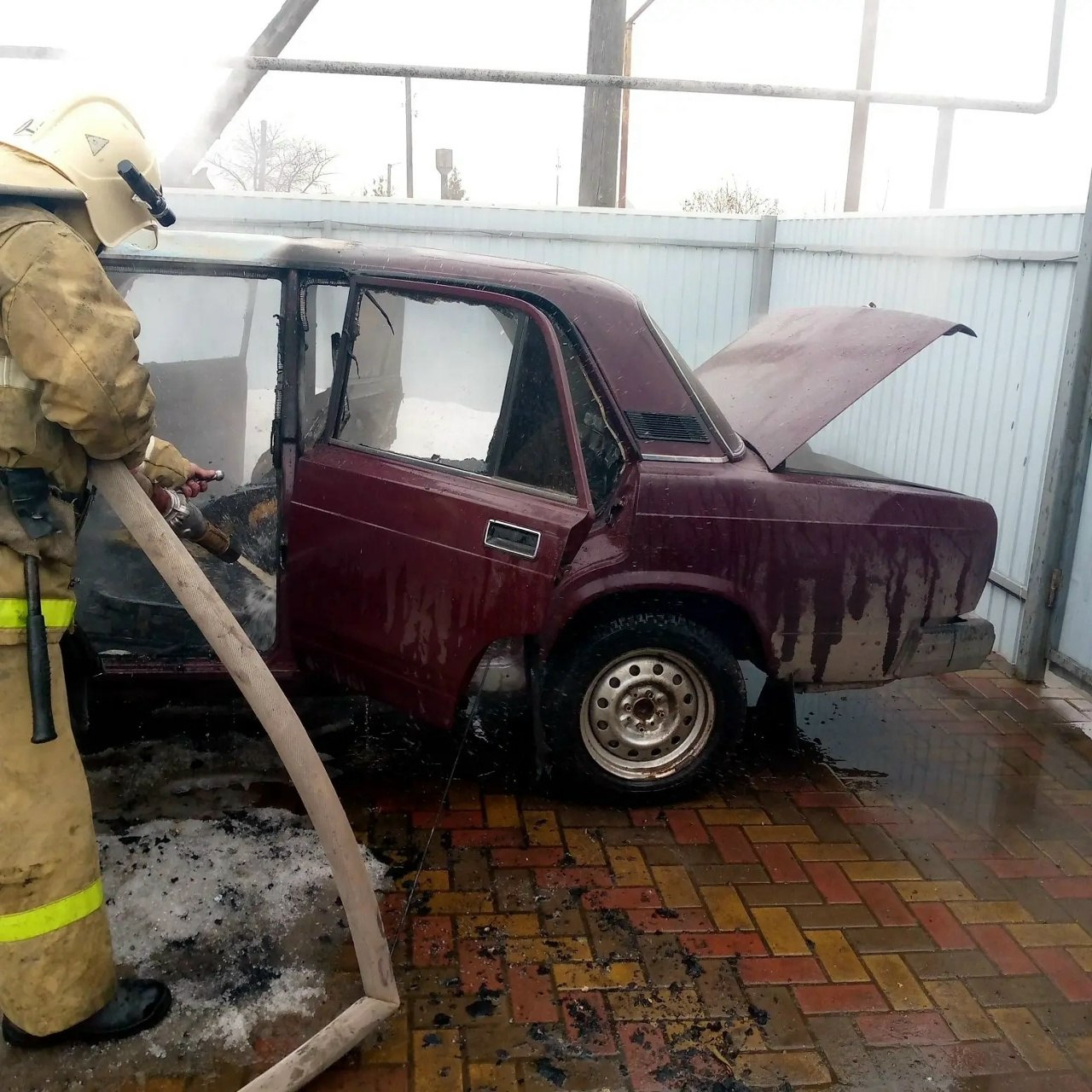 На место происшествия незамедлительно выехали две автоцистерны. Прибыв на место, огнеборцы обнаружили горение легкового автомобиля ВАЗ 2107. Пожарные оперативно приступили к ликвидации возгорания, подав один ствол «Б».