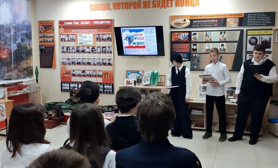 В городском Дворце культуры звучали со сцены патриотические песни. Зрителям был показан документальный фильм, отражающий значение исторического события Весны 2014 года.