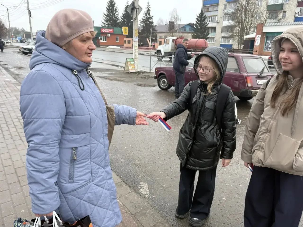 Юные стажеры волонтерского отряда « Данко» присоединились ко Всероссийской акции « Наш триколор» , ко Дню воссоединения Крыма с Россией!