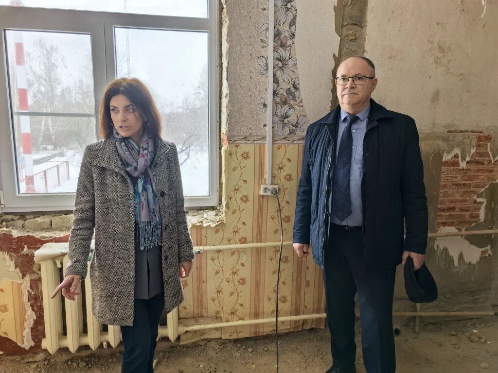 Глава Щигровского района совместно с первым заместителем руководителя Администрации Курской области Олесей Геннадьевной Дворцовой проинспектировал ход капитального ремонта в школах села Знаменка и села Косоржа