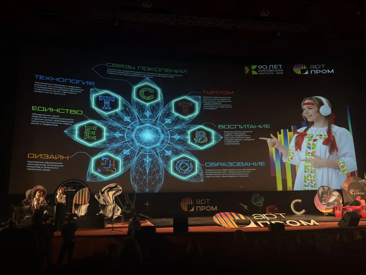 В рамках кейс-шоу «Партнерство промышленности и искусства для развития региона» курская команда представила успешные практики взаимодействия индустриального сектора и креативных индустрий. В частности, были продемонстрированы проекты завода КЭАЗ, который с использованием нейросетей и цифрового аватара KAIA интегрирует производственные процессы в креативное пространство. Ключевым элементом экспозиции стал исторический проект, посвященный первой в мире ветроэлектростанции инженера Уфимцева, обеспечивавшей освещение целого квартала Курска еще в 30-х годах прошлого века.