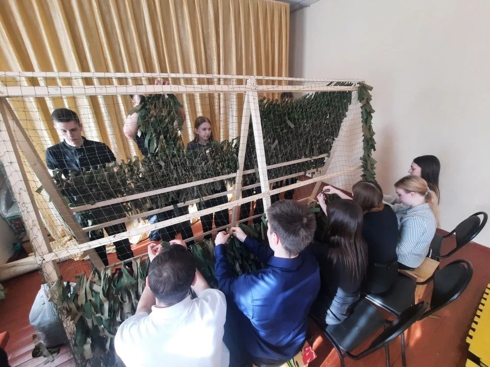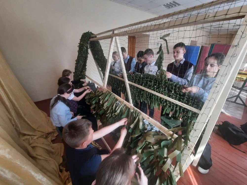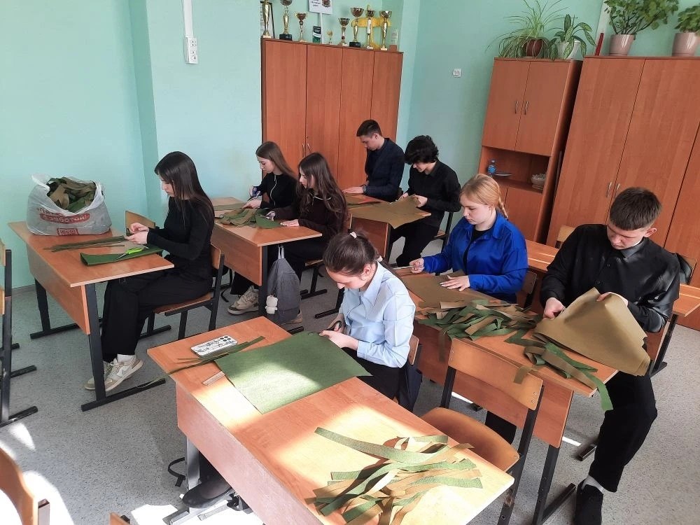 Ученики Фатежской СОШ 2 продолжают оказывать посильную помощь военнослужащим. Старшеклассники и юнармейцы нашей школы подготовили ленты и сплели маскировочную сеть.