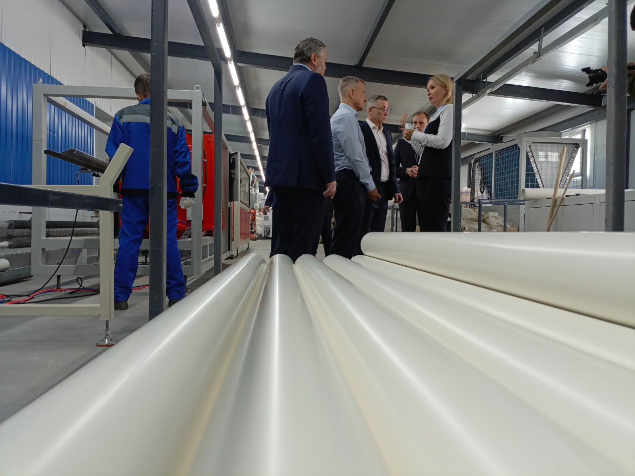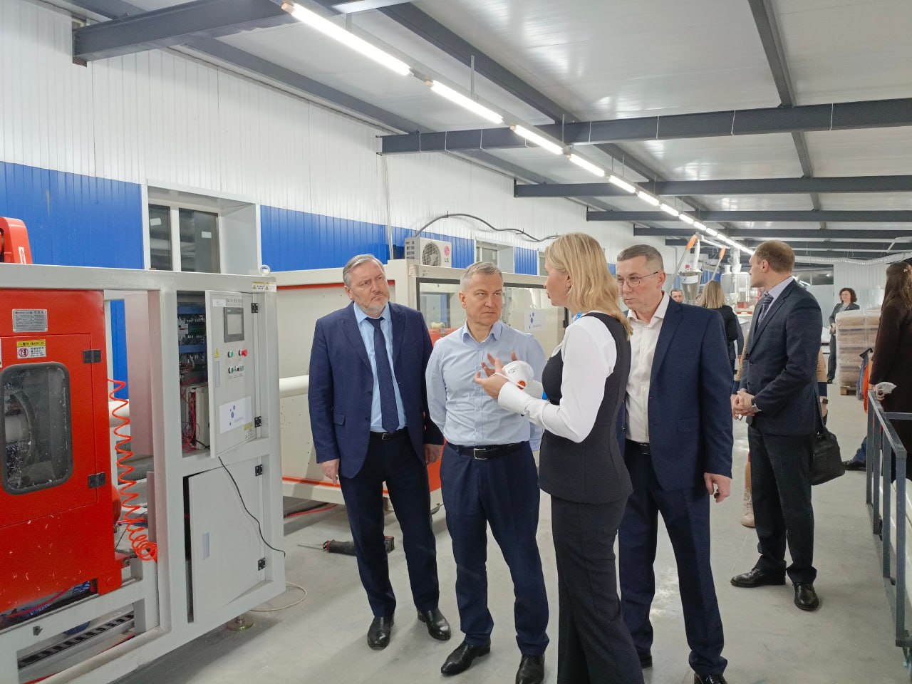 Здесь производят конвейерное оборудование для транспортировки сыпучих продуктов, трубчатые и аэромеханические конвейеры. Александр Чепик осмотрел производственные площадки, складские помещения, экспериментальный цех и провёл совещание с руководством предприятия.