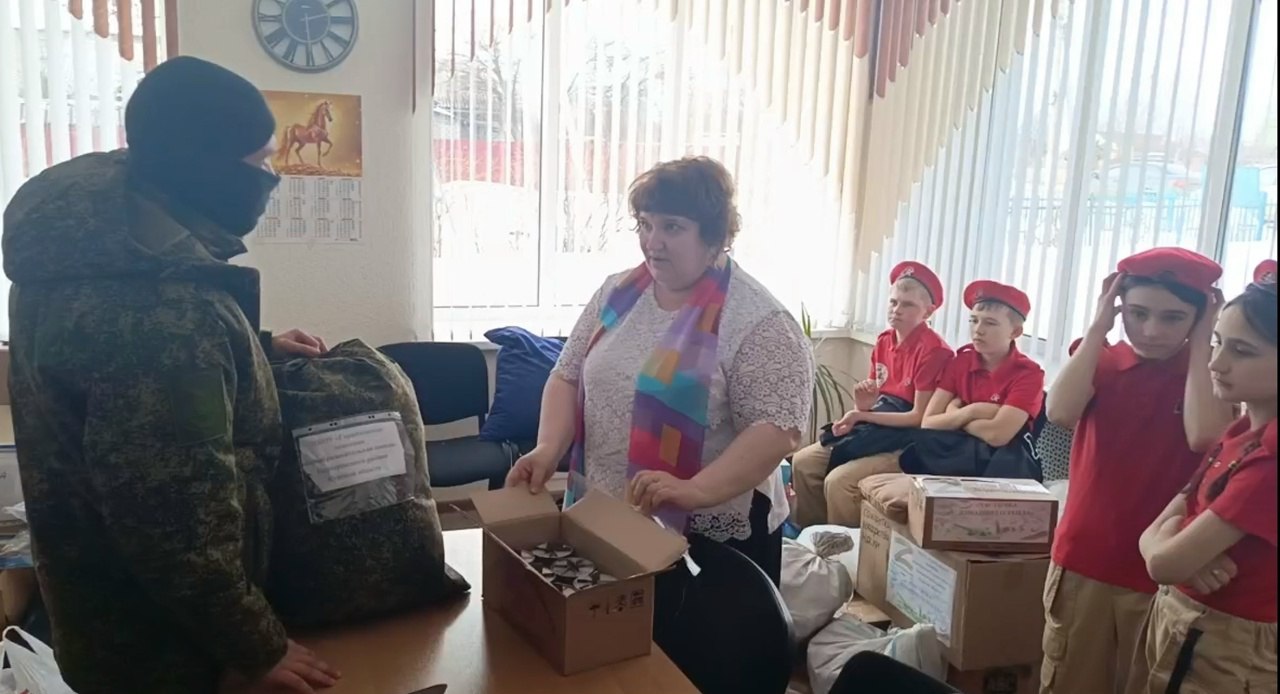 Ученики Горяйновской школы встретились с бойцами, участвующими в специальной военной операции, и передали им гуманитарный груз.