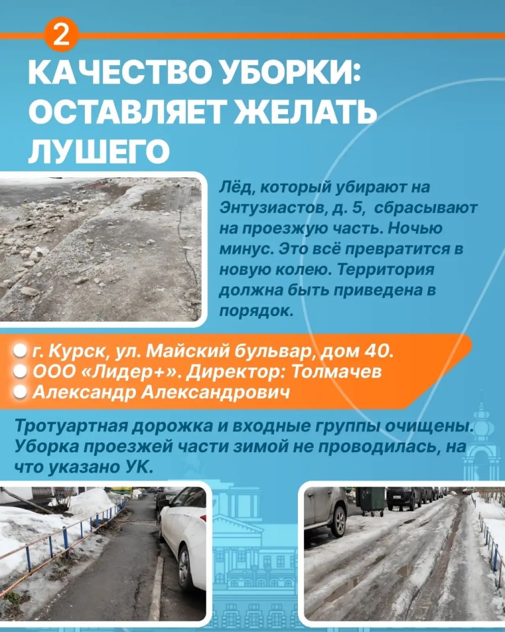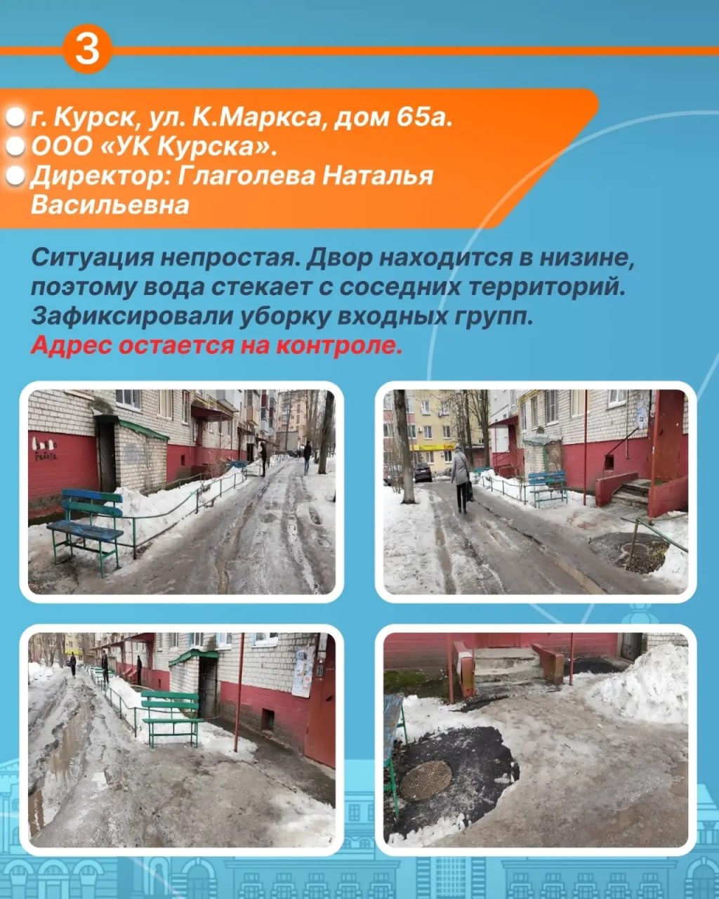 Она просит курян сообщать о проблемных адресах у нее в комментариях. Обещают подключать ГЖИ и реагировать на каждое обращение.