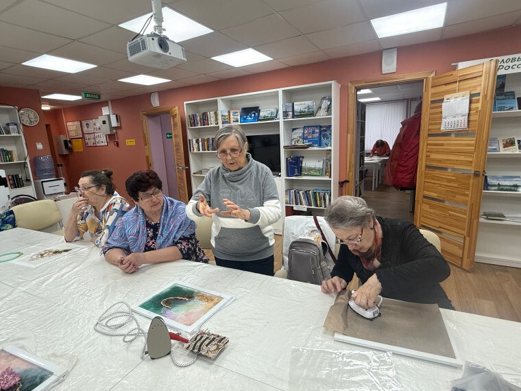 В Библиотеке – филиале №1 состоялось очередное занятие факультета «Народное творчество» Университета народного просвещения им. Т.П. Николаева. Тема занятия – вышивка сирени