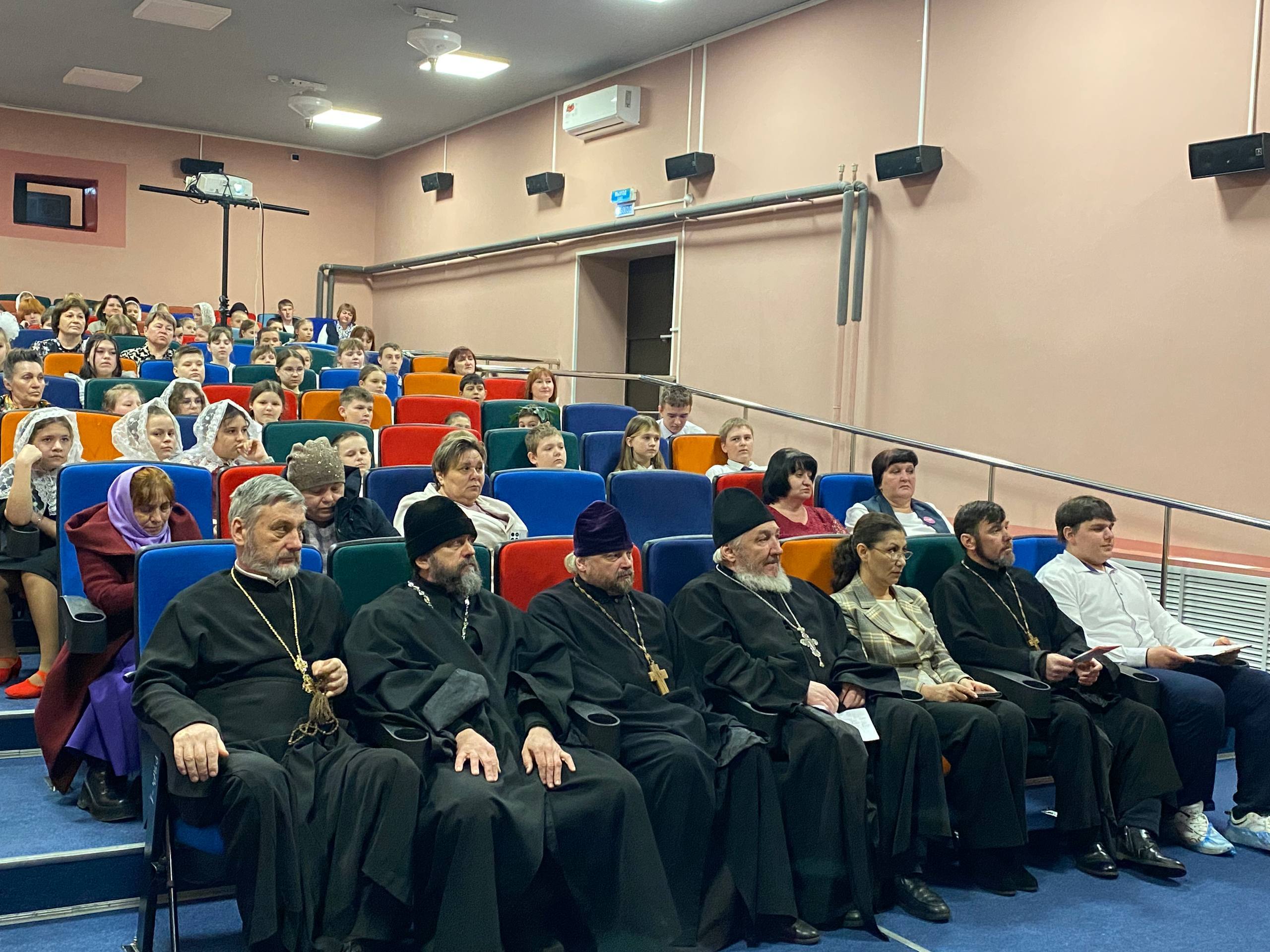 В зале собрались представители разных поколений: школьники, их родители и педагоги, воспитанники воскресной школы, а также священнослужители Касторенского церковного округа, представители районной администрации.