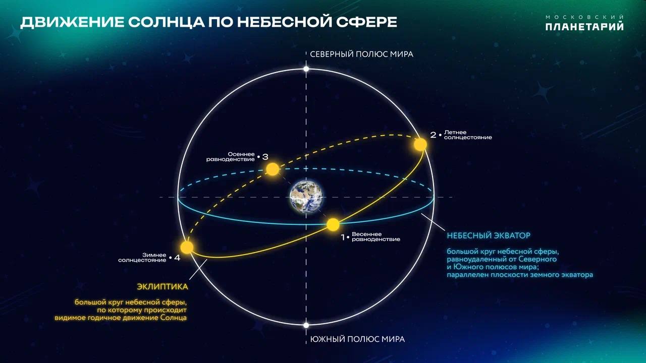 20 марта 2026 года в 17:46 по московскому времени Солнце пересекает небесный экватор и переходит из Южного полушария небесной сферы в Северное.