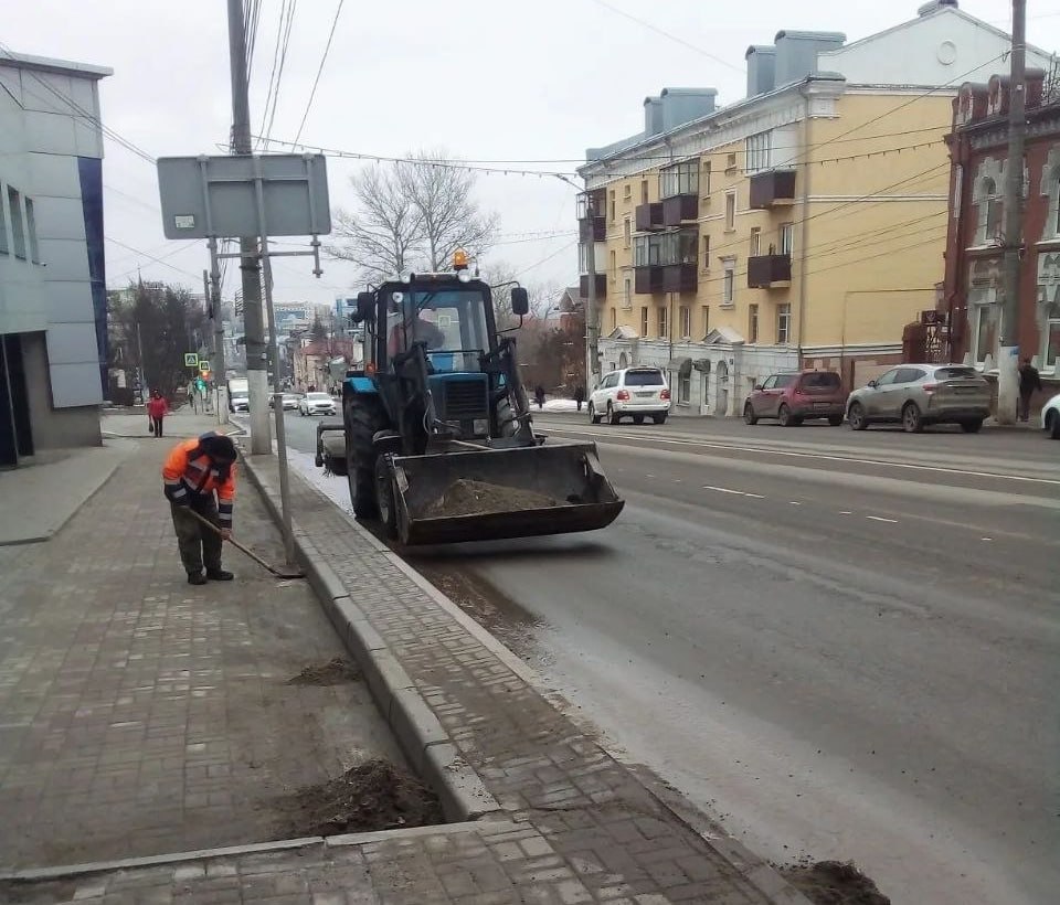 Подрядчики убирают тротуары и дороги от песка, оставшегося после обработки от наледи зимой. Всего по городу работают 49 машин и 80 человек. Из-за переменчивой погоды еще 17 единиц техники находятся в резерве.