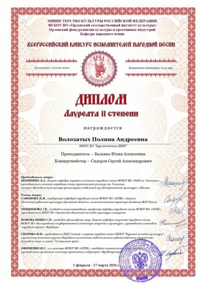 Волохатых Полина - Лауреат || степени;