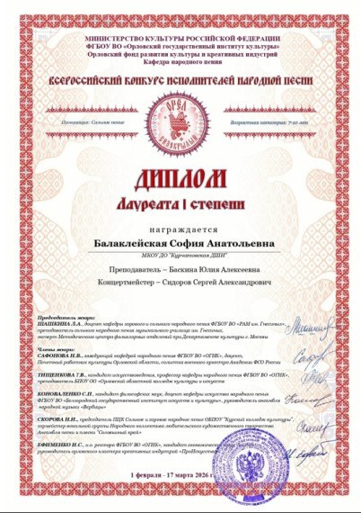 Балаклейская София - Лауреат | степени;