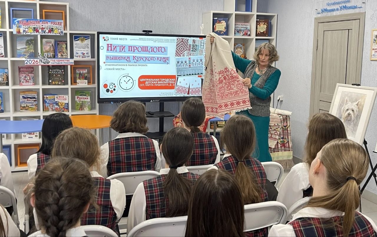 В Центральной городской детской библиотеке состоялся этнопрактикум «Нити прошлого: вышивка Курского края». Мероприятие прошло в рамках проекта «Гений места».
