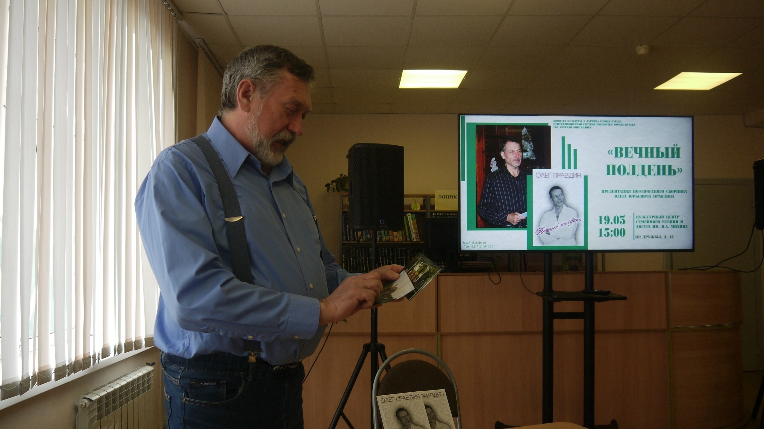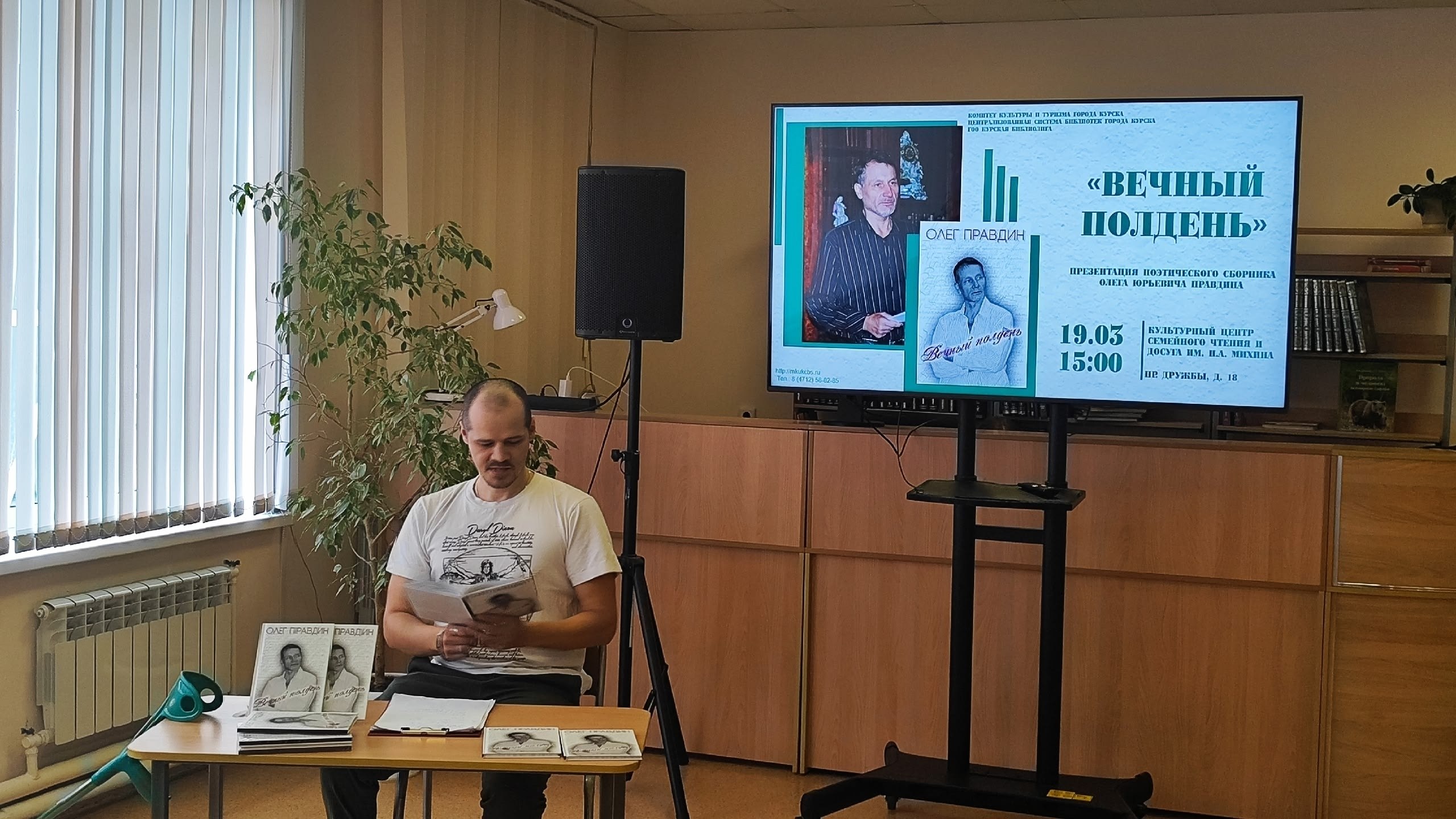 Участники проекта "Курское долголетие" г. Курска посетили презентацию поэтического сборника Олега Правдина «Вечный полдень». Мероприятие состоялось на площадке Культурного центра семейного чтения и досуга им. П.А. Михина.