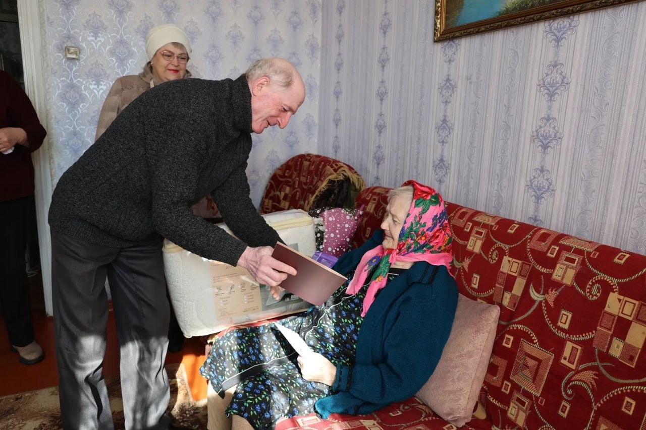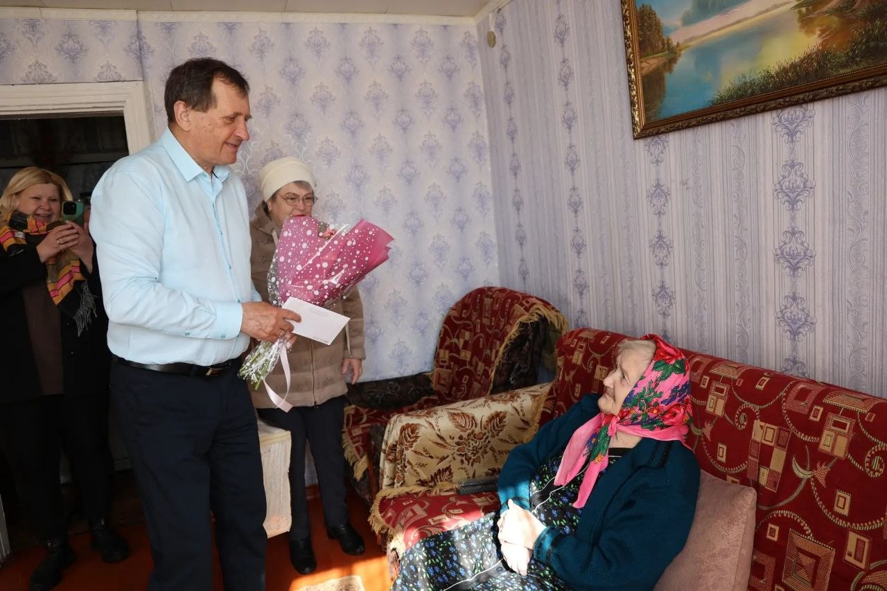 С пожеланиями долгих лет жизни и крепкого здоровья вручили ей поздравительный адрес, цветы и подарки.