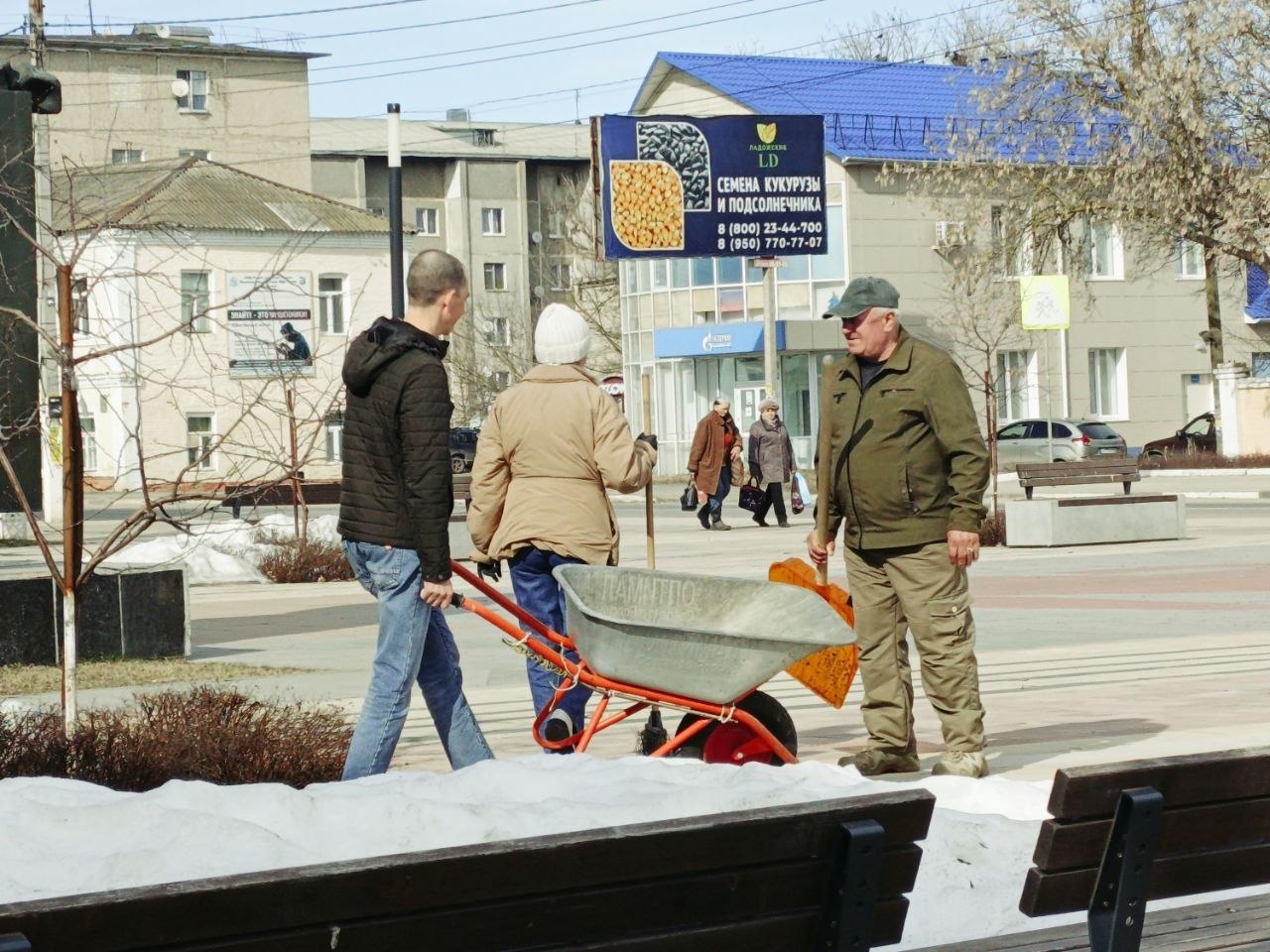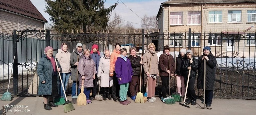 Благоприятная погода способствовала трудоспособности и прекрасному настроению. Дружно привели в порядок центральную улицу и прилегающие территории вокруг административных зданий.