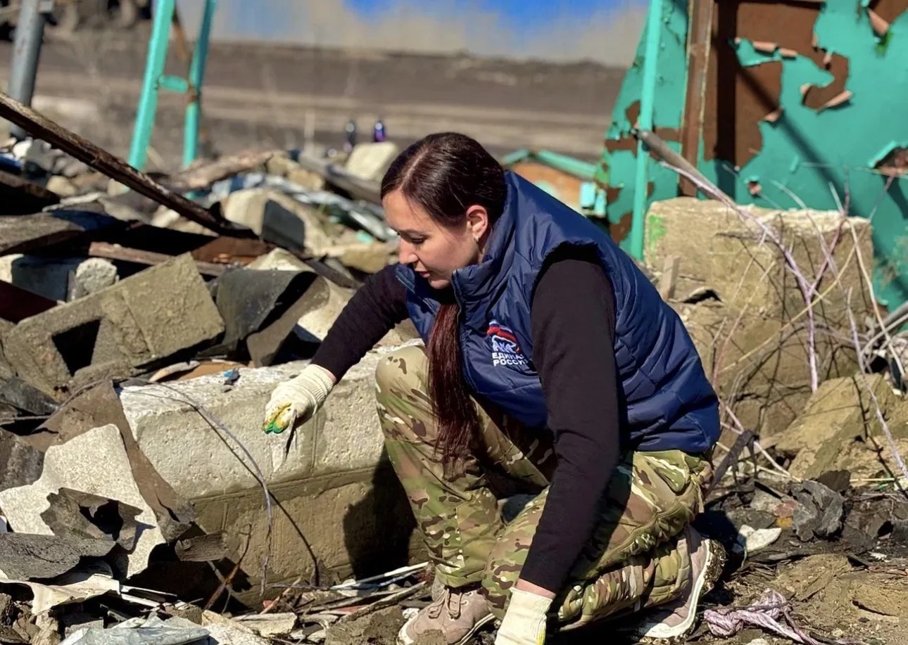 Почти тысячу тонн отходов от разобранных завалов вывезли волонтеры лагеря Единой России «Курский рубеж» с приграничья