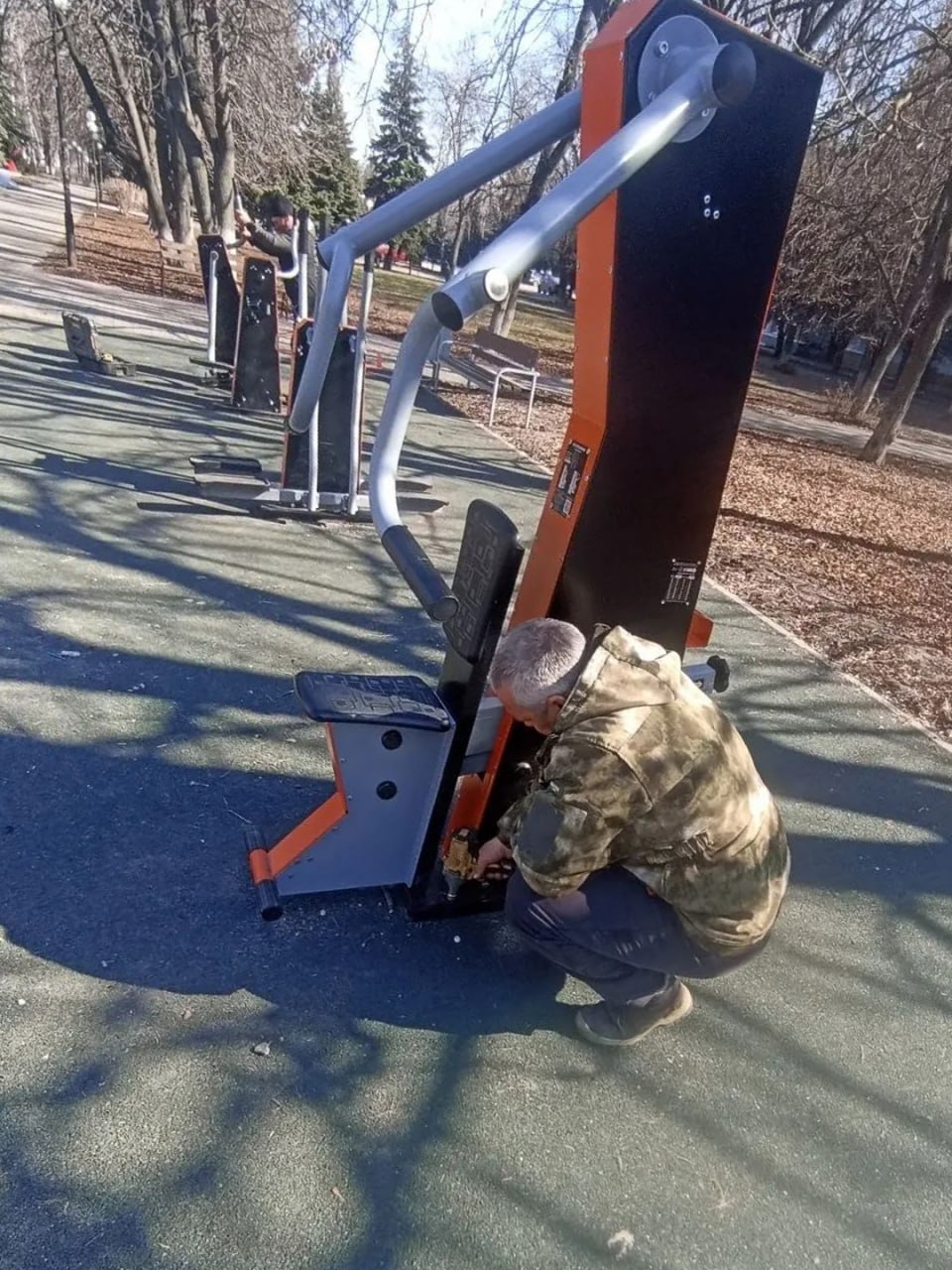 Это сделали, чтобы укрепить опоры оборудования — забетонировать новые закладные. Через неделю тренажеры вернут на прежние места, и горожане снова смогут пользоваться ими.