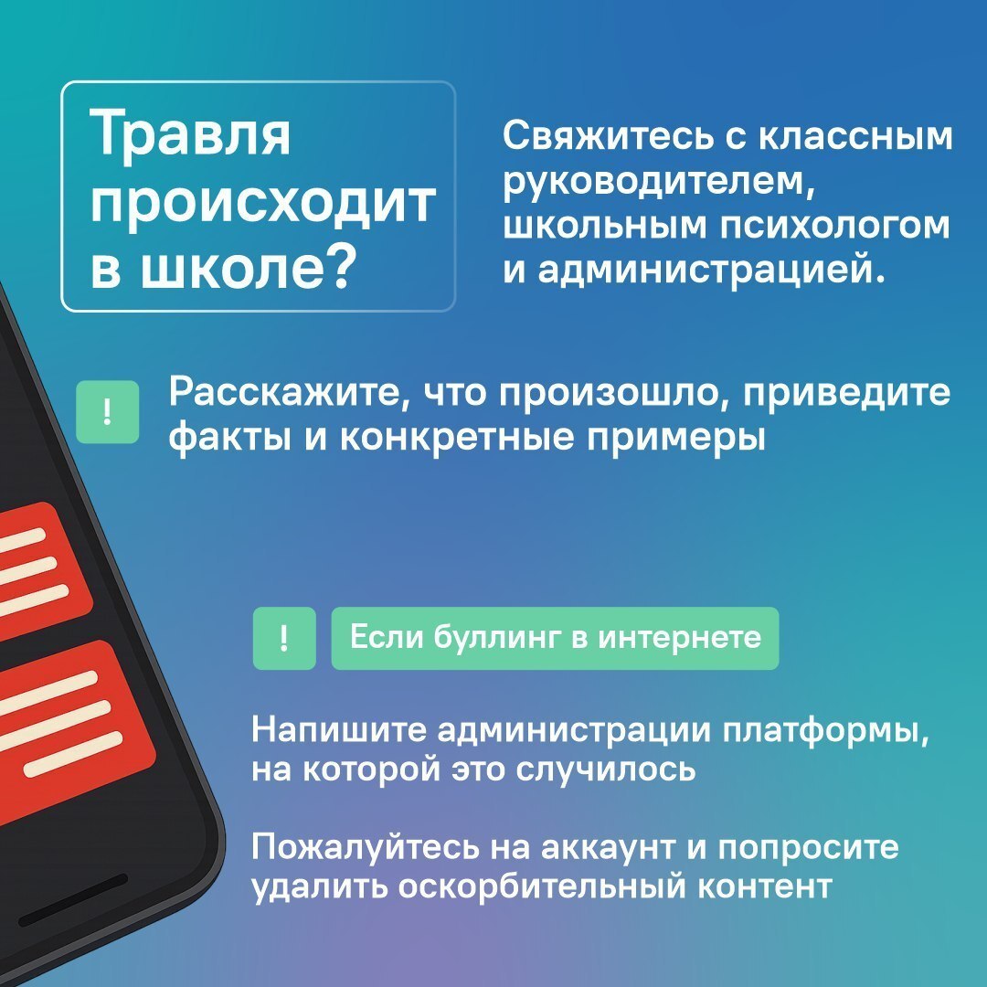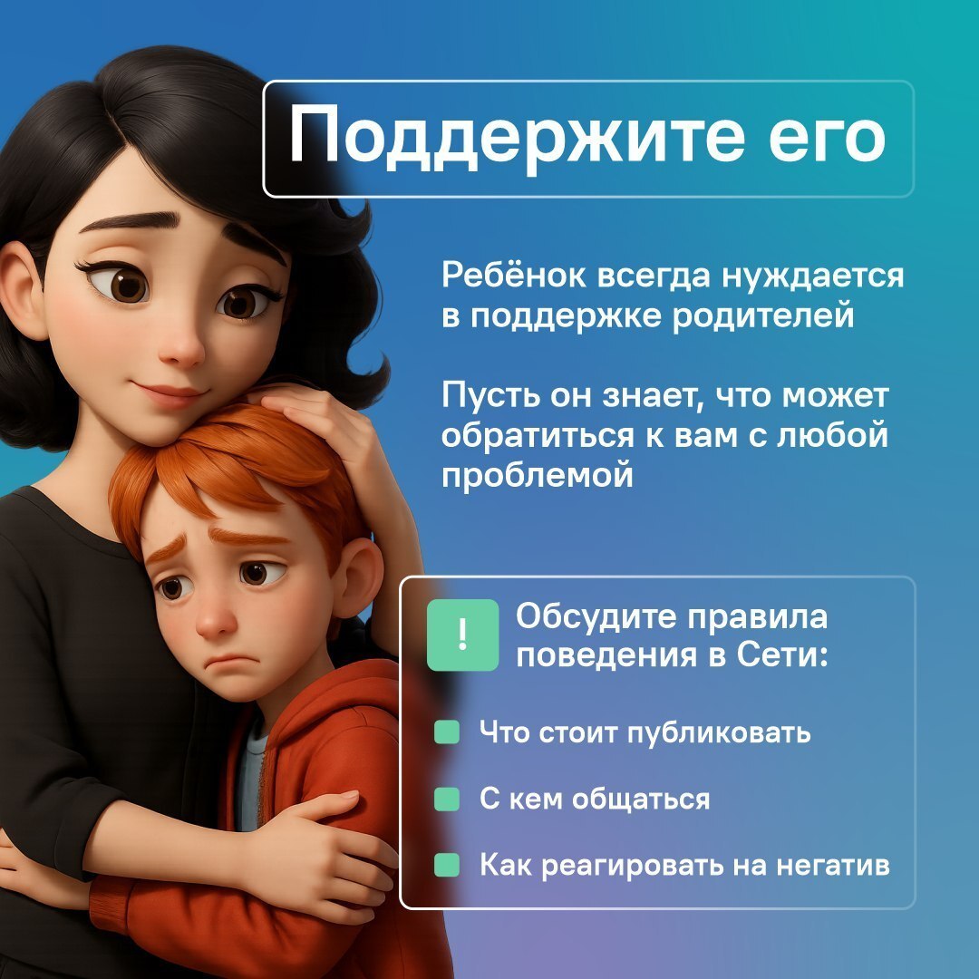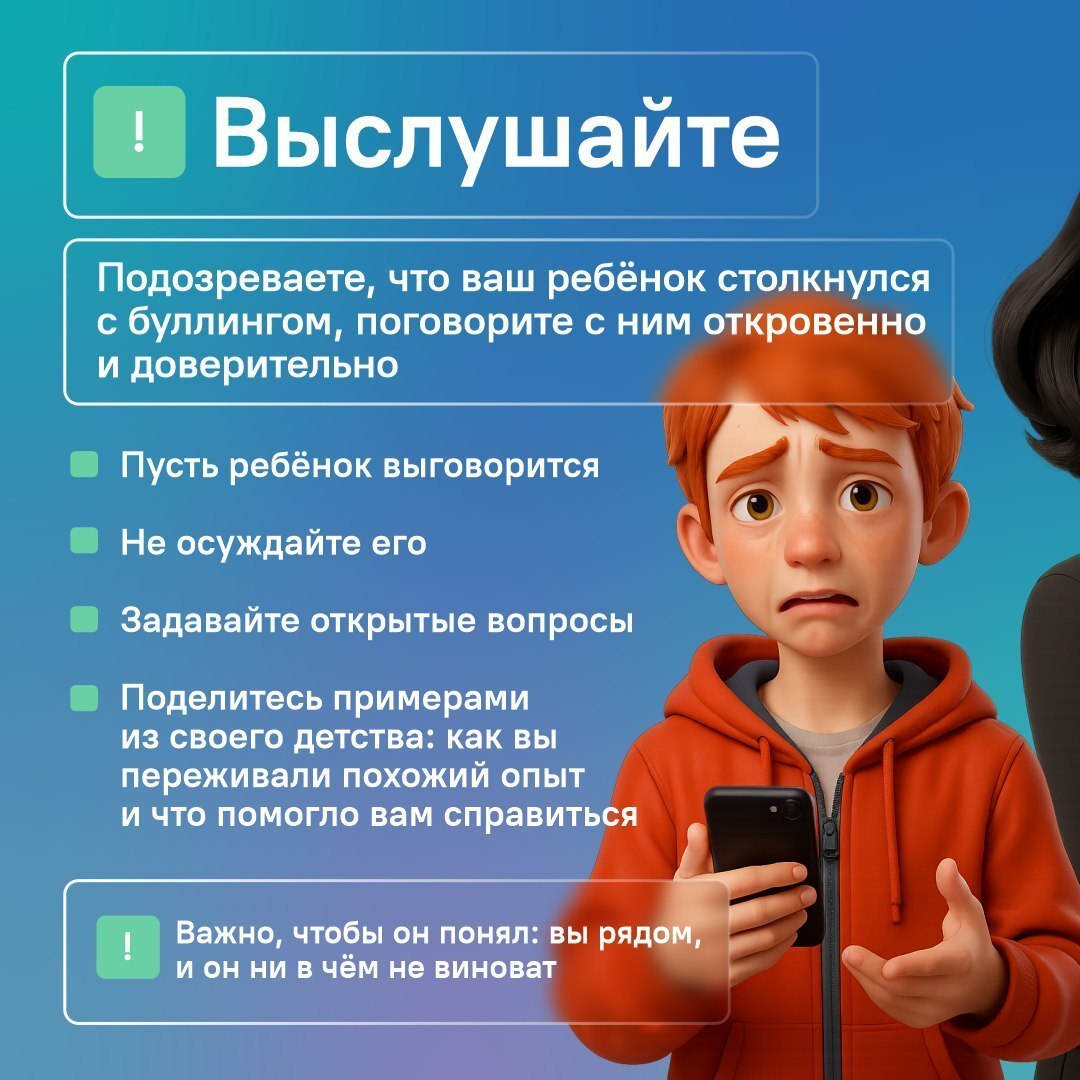 О том, что делать в таких ситуациях, как родителям помочь своему ребёнку, рассказываем в карточках.