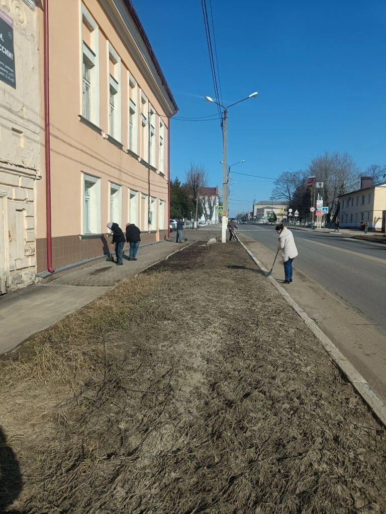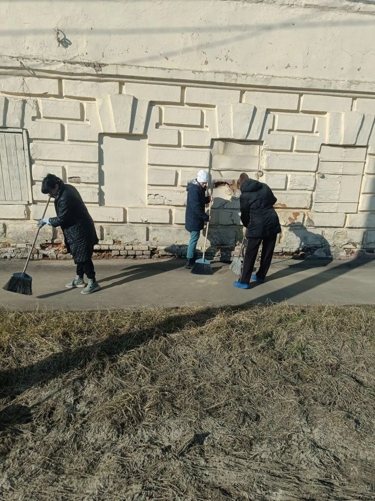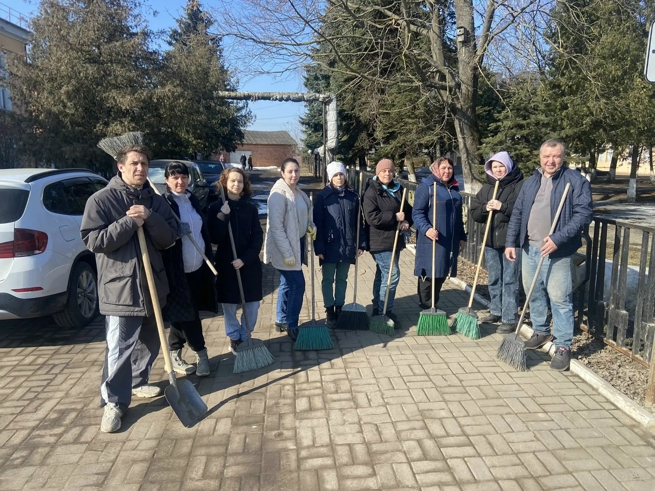 Работники культуры Фатежского РДНТ присоединились к общегородскому субботнику и очистили прилегающую территорию от мусора и песка накопившегося за зиму.