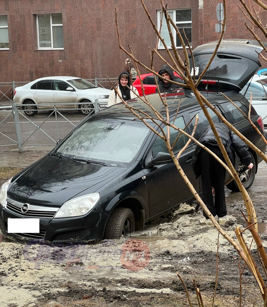 Курские газоны мстят автомобилистам. Инцидент произошел на улице Ямской в Курске, у кинотеатра «Юность». Легковой автомобиль «Опель» увяз в газоне.