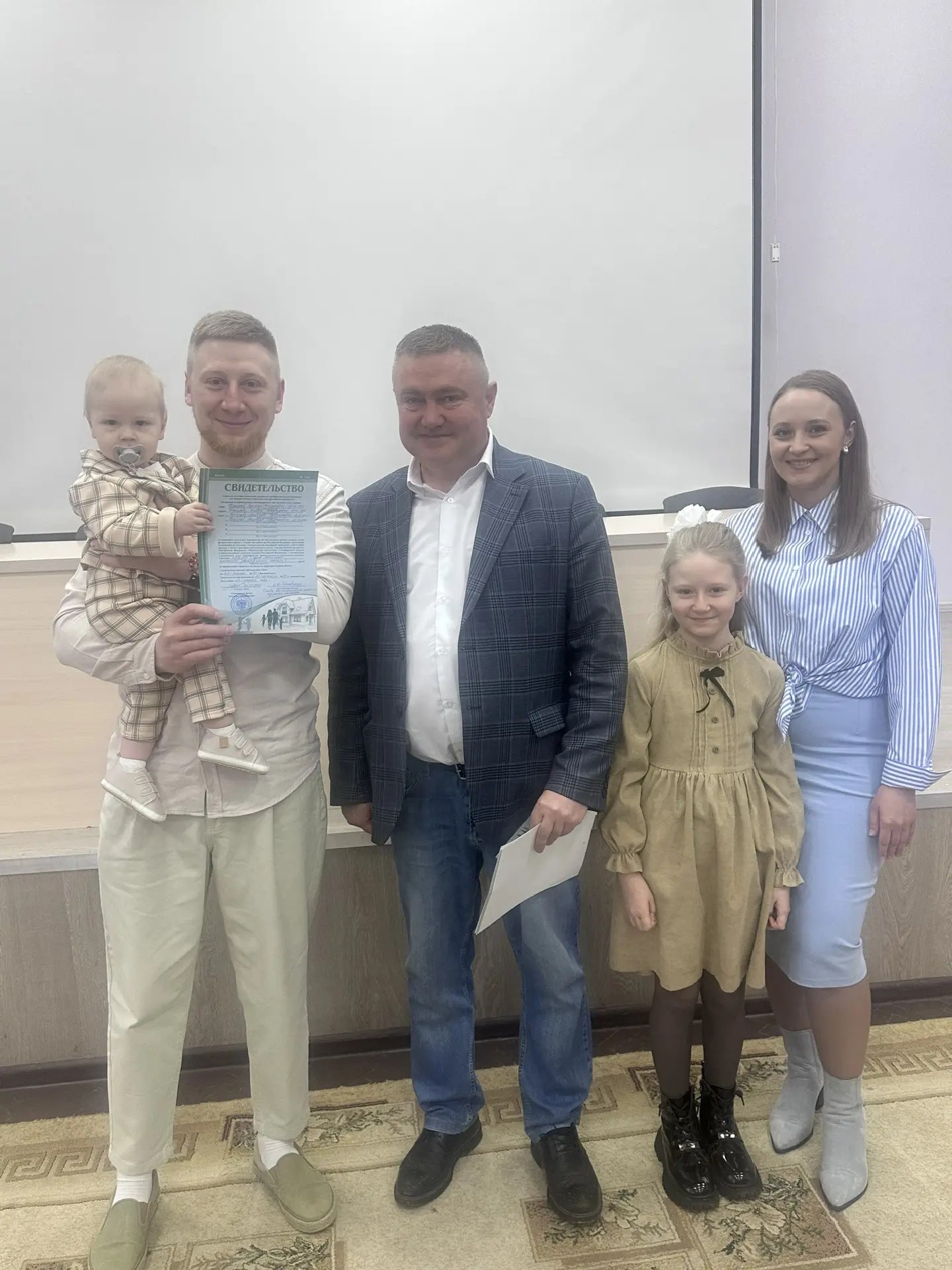 Олег Анатольевич тепло поздравил счастливых обладателей свидетельств, пожелав им счастья, здоровья и всех благ. Он выразил надежду, что их семьи будут крепкими и дружными, будут расти год от года, а в стенах их родного дома всегда будет звенеть детский смех.