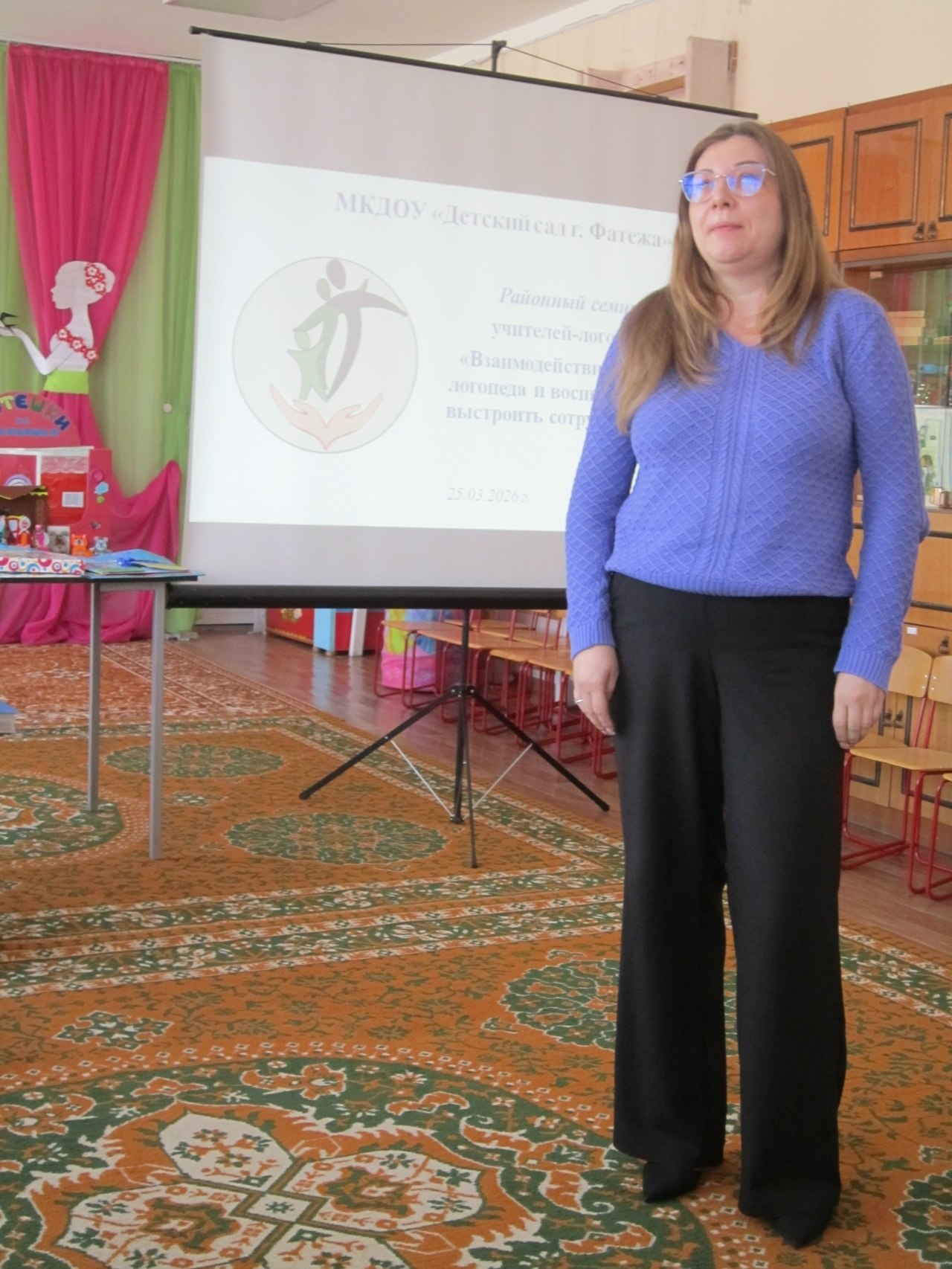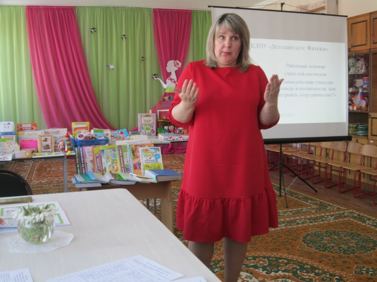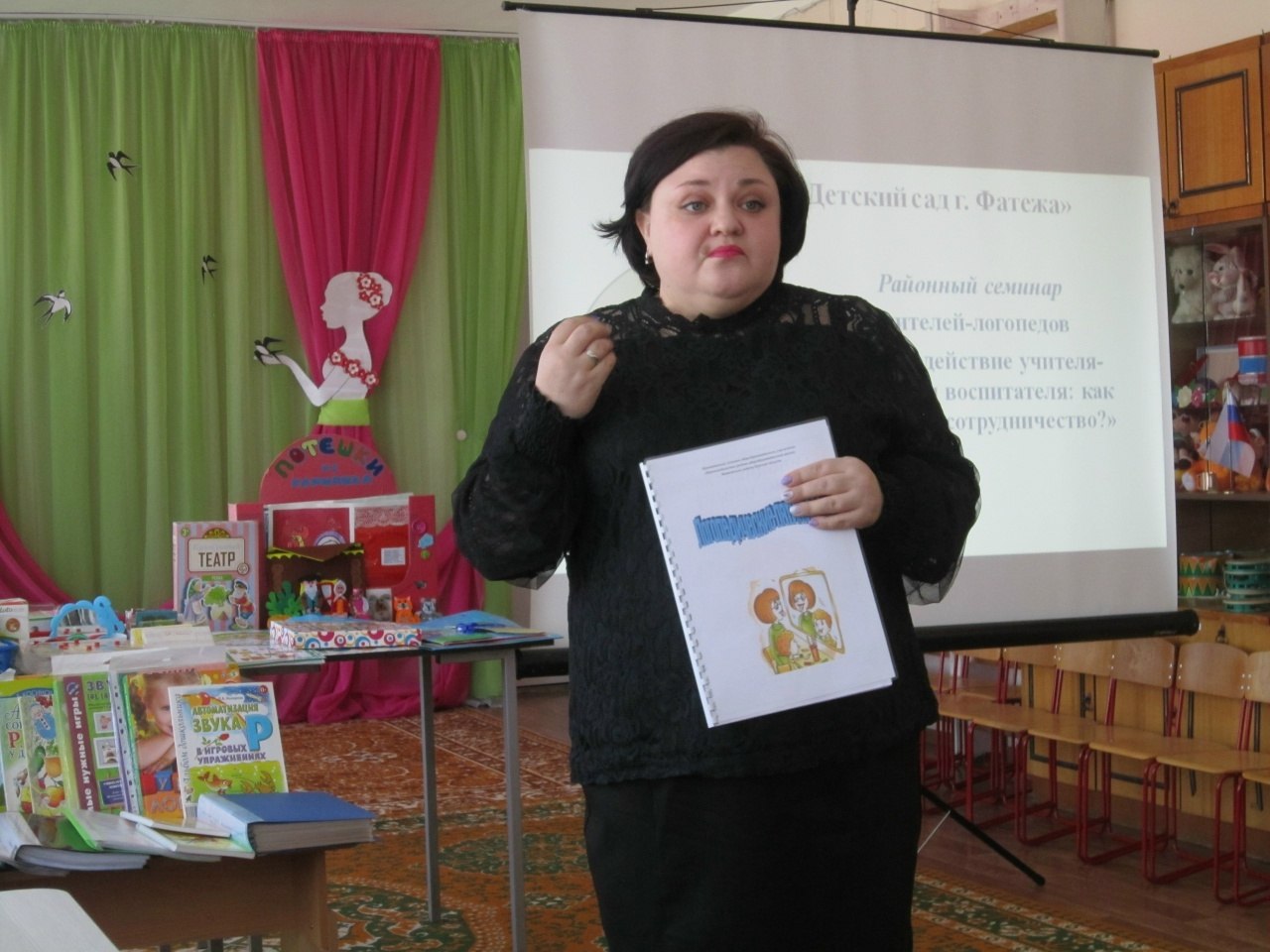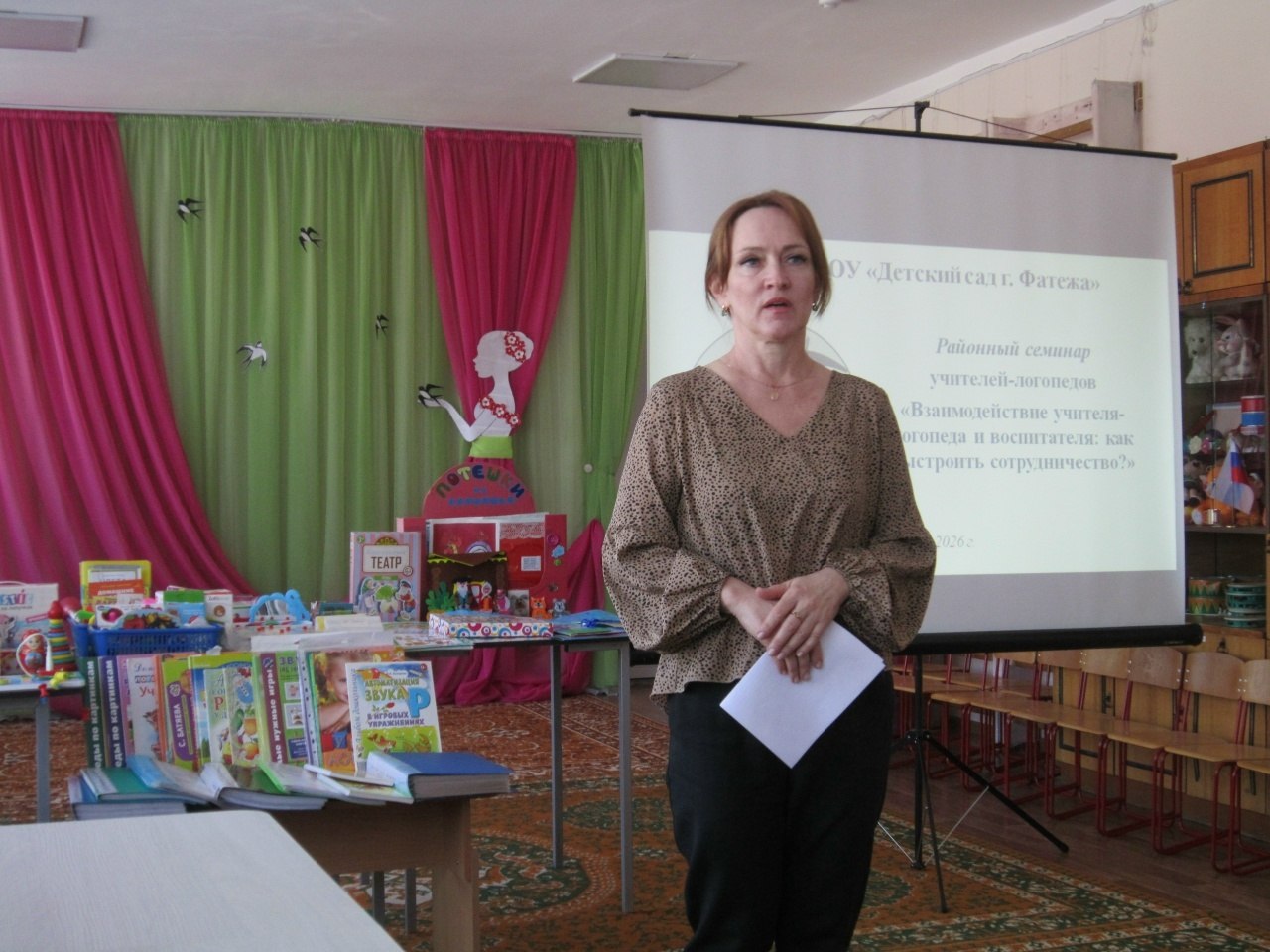 В детском саду г.Фатежа прошел семинар учителей-логопедов «Взаимодействие учителя-логопеда и воспитателя: как выстроить сотрудничество?». В рамках семинара учитель-логопед Чаплыгина Т.В. и воспитатель Сергеева И.С поделились своим опытом сотрудничества по речевому развитию дошкольников.