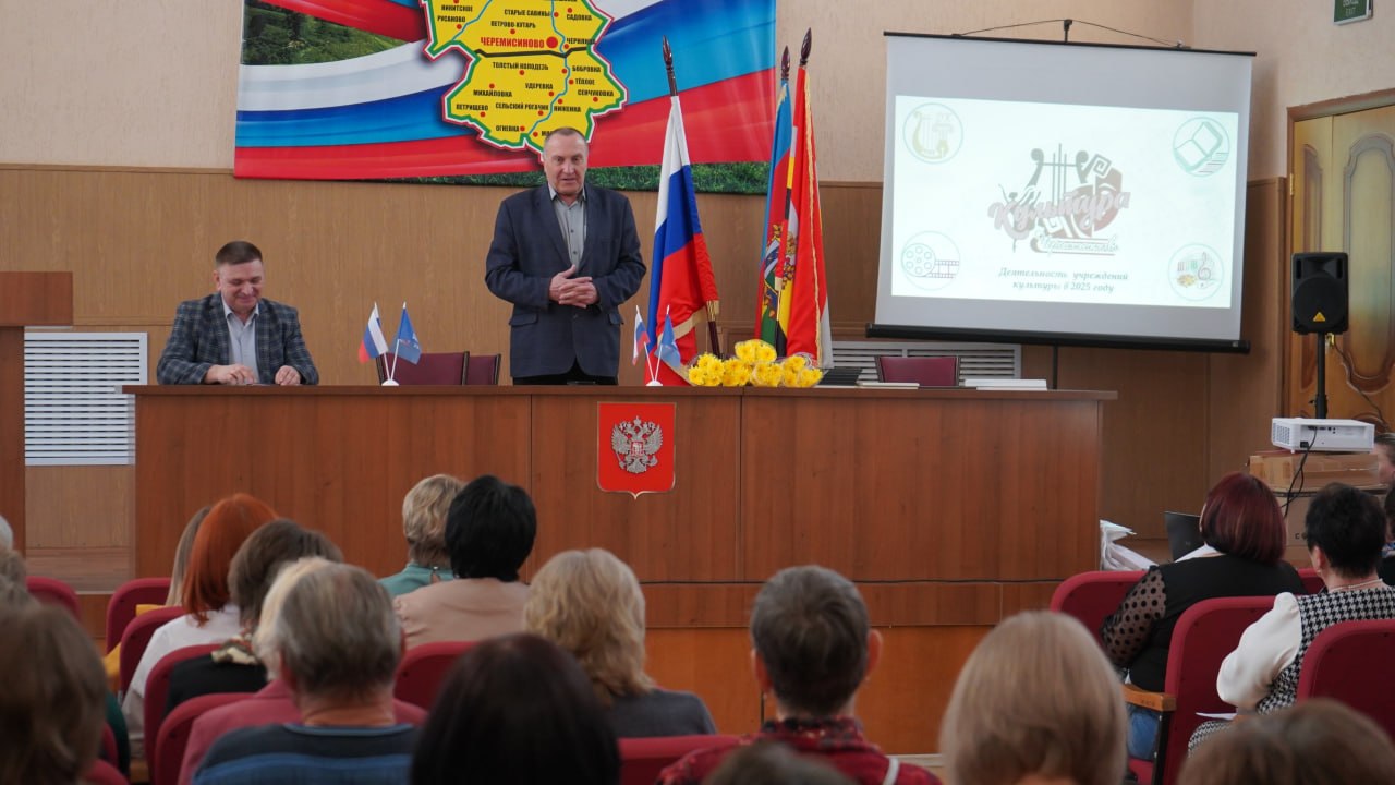 Сегодня в Администрации Черемисиновского района состоялось торжественное мероприятие, посвящённое прошедшему Дню работника культуры, которое началось с традиционного отчета начальника управления культуры Александра Алексеевича Руденского о достижениях и ключевых событиях учреждений района за 2025 год, о развитии культурной инфраструктуры и реализации творческих проектов.