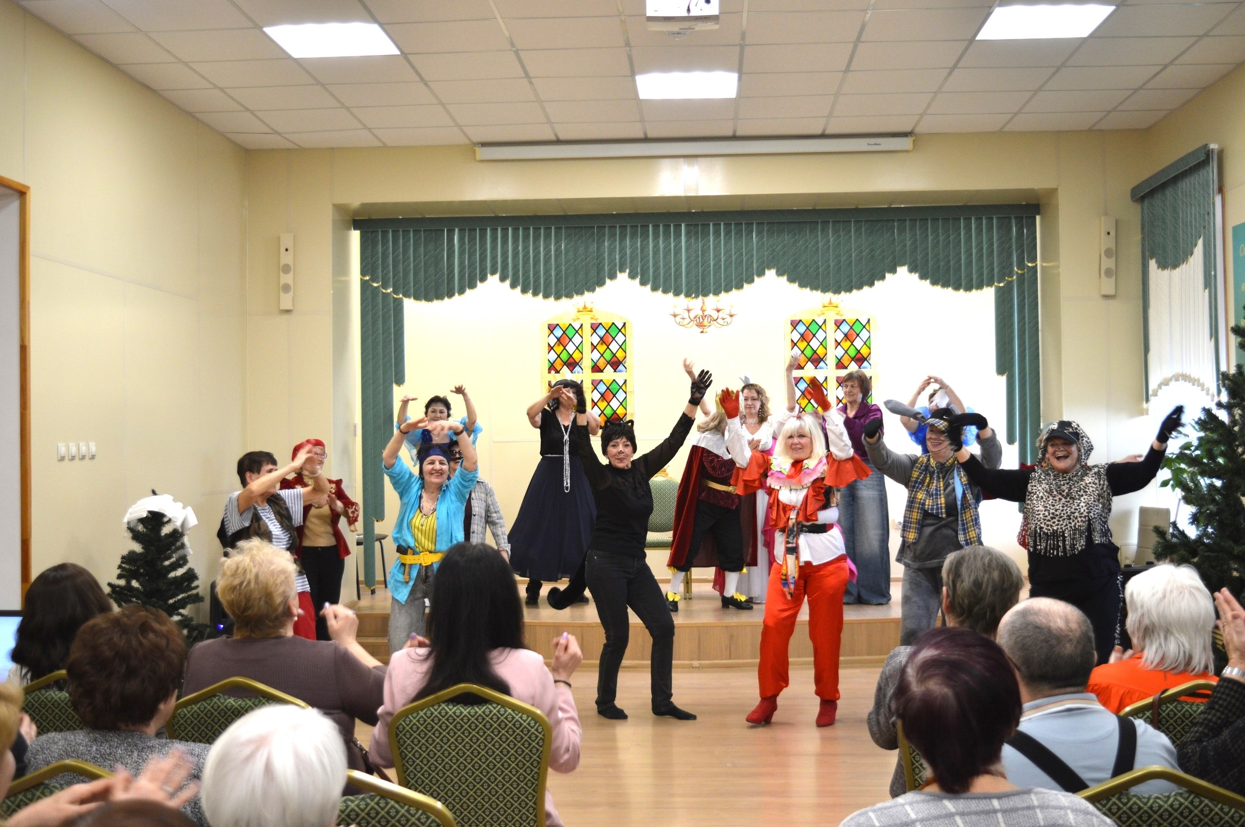 В центре социального облуживания "Участие" г. Курска состоялся повторный показ музыкальной сказки "Мы к вам заехали на час!" в исполнении активистов проекта "Курское долголетие".