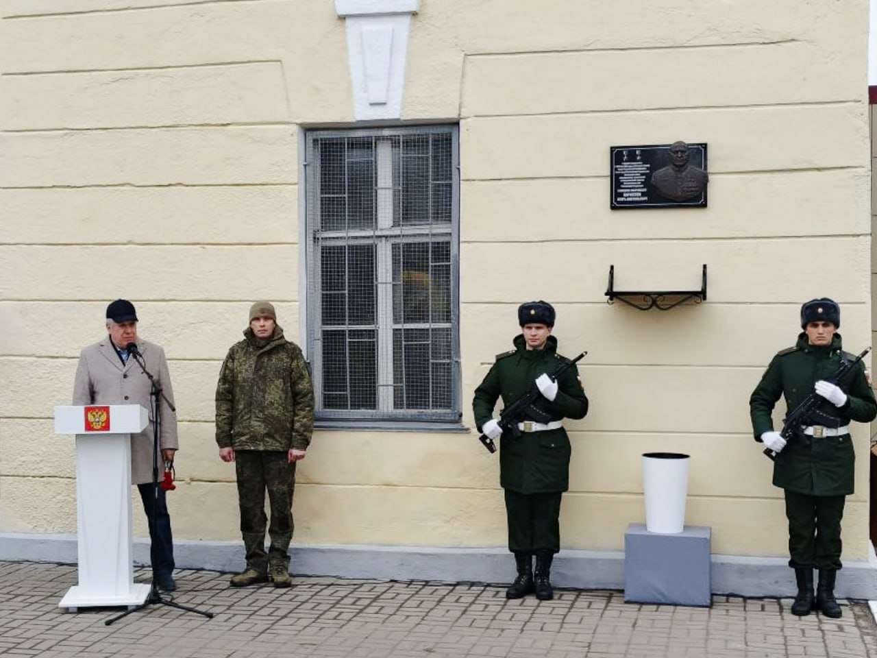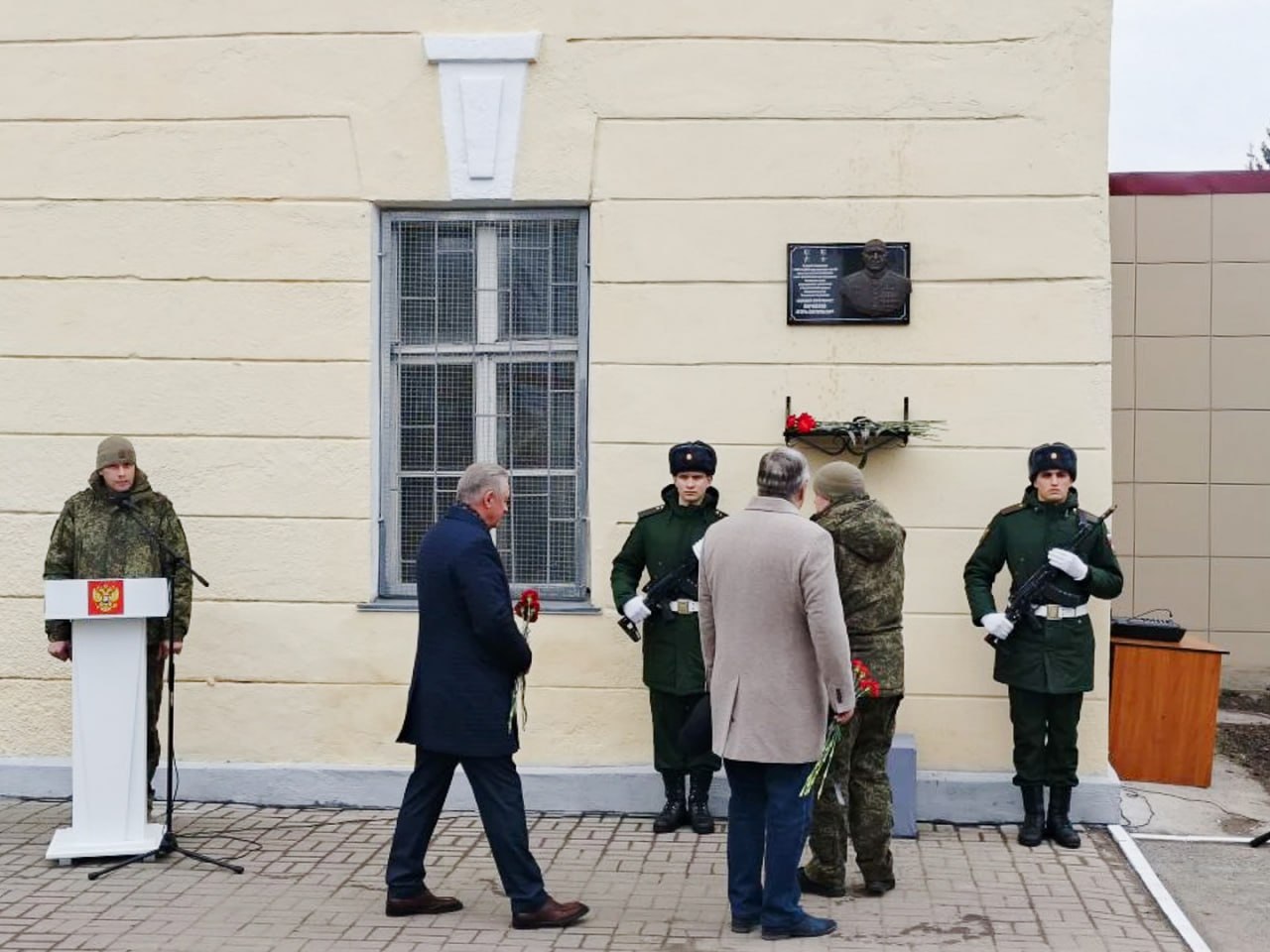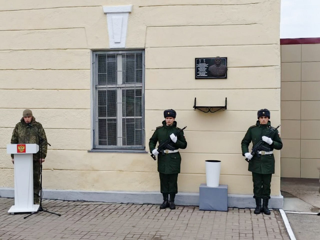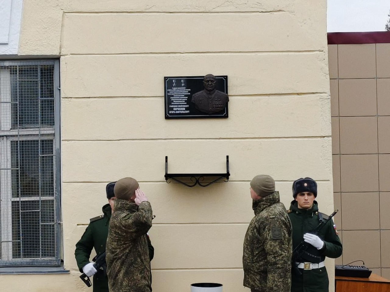 На фасаде у КПП войсковой части № 11262 открыли мемориальную доску в честь Героя России и Героя Труда России генерал-лейтенанта Игоря Анатольевича Кириллова. С 2017 года он возглавлял войска радиационной, химической и биологической защиты Вооруженных сил РФ.