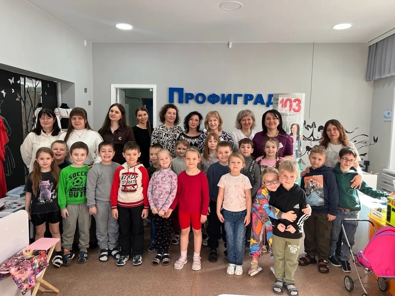 Недавно к воспитанникам детского сада № 77 пришли сверстники из детского сада № 124. Ребята вместе побывали на площадках «Профиграда»: в «Мультстудии», на «Ферме», в «Ателье», на «Стройке», в «Кафе», клинике «Добрый доктор» и даже на археологических раскопках.