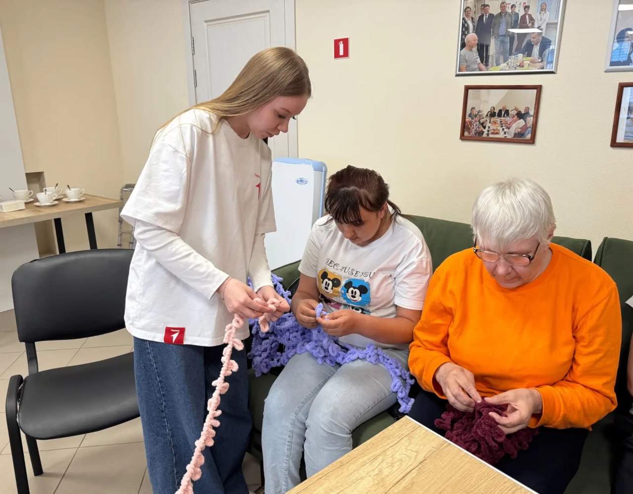 Участники «Движения Первых» первичного отделения школы № 23 провели мастер-класс по вязанию руками для старшего поколения.
