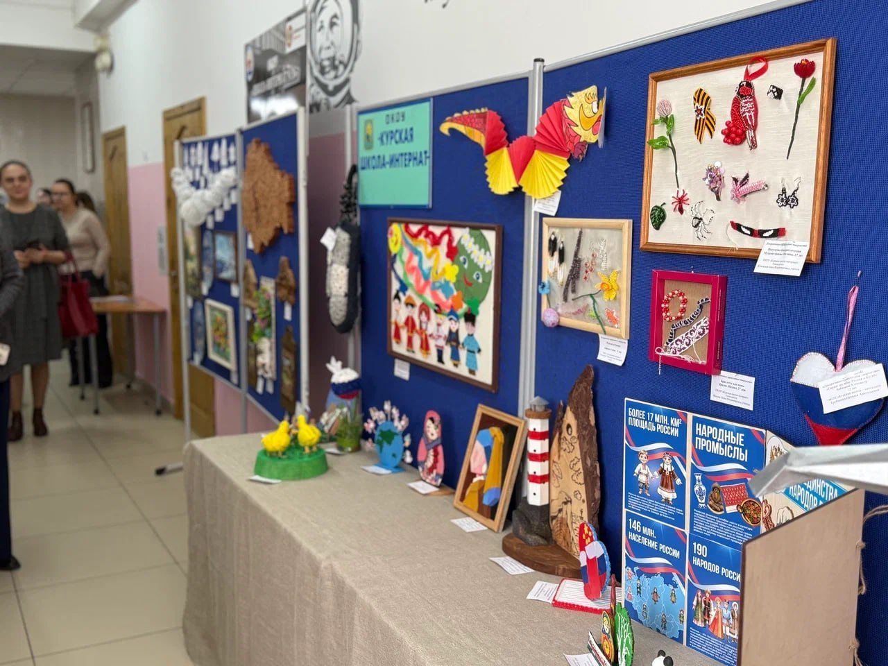 В работе выставки, посвященной Году единства народов России и Году образования в России и Китае, приняли участие 14 образовательных организаций Курской области. Обучающиеся представили изделия выполненные в разных техниках: от керамики и скульптуры до вязания и шитья. Среди экспонатов можно увидеть сценические костюмы, аксессуары, скульптуры, куклы, настенные часы и многое другое.