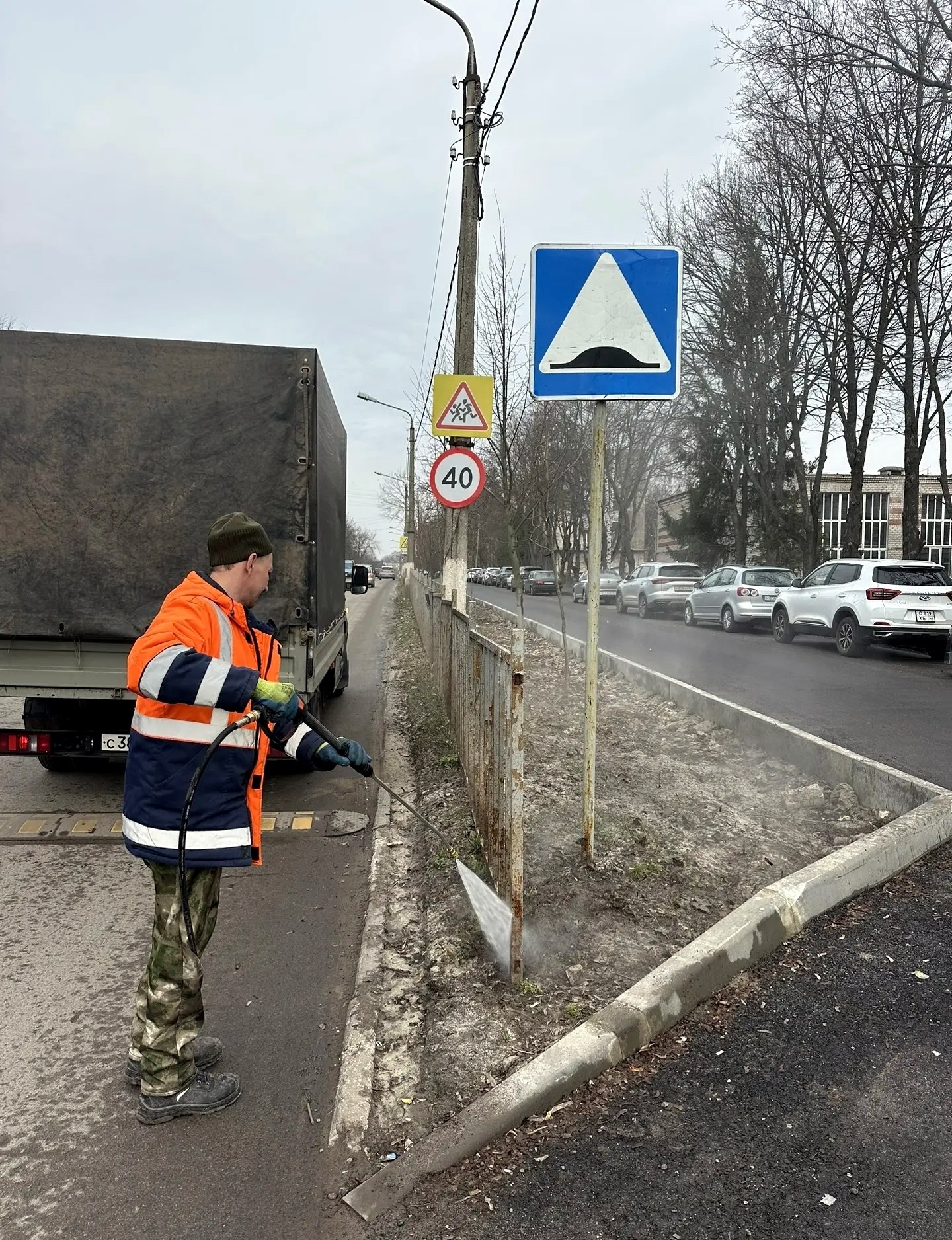 Цель работ — придать магистралям и городу эстетичный, опрятный, ухоженный вид, а также обеспечить безопасность пешеходов и водителей. Для очистки используется оборудование высокого давления («Керхер»).