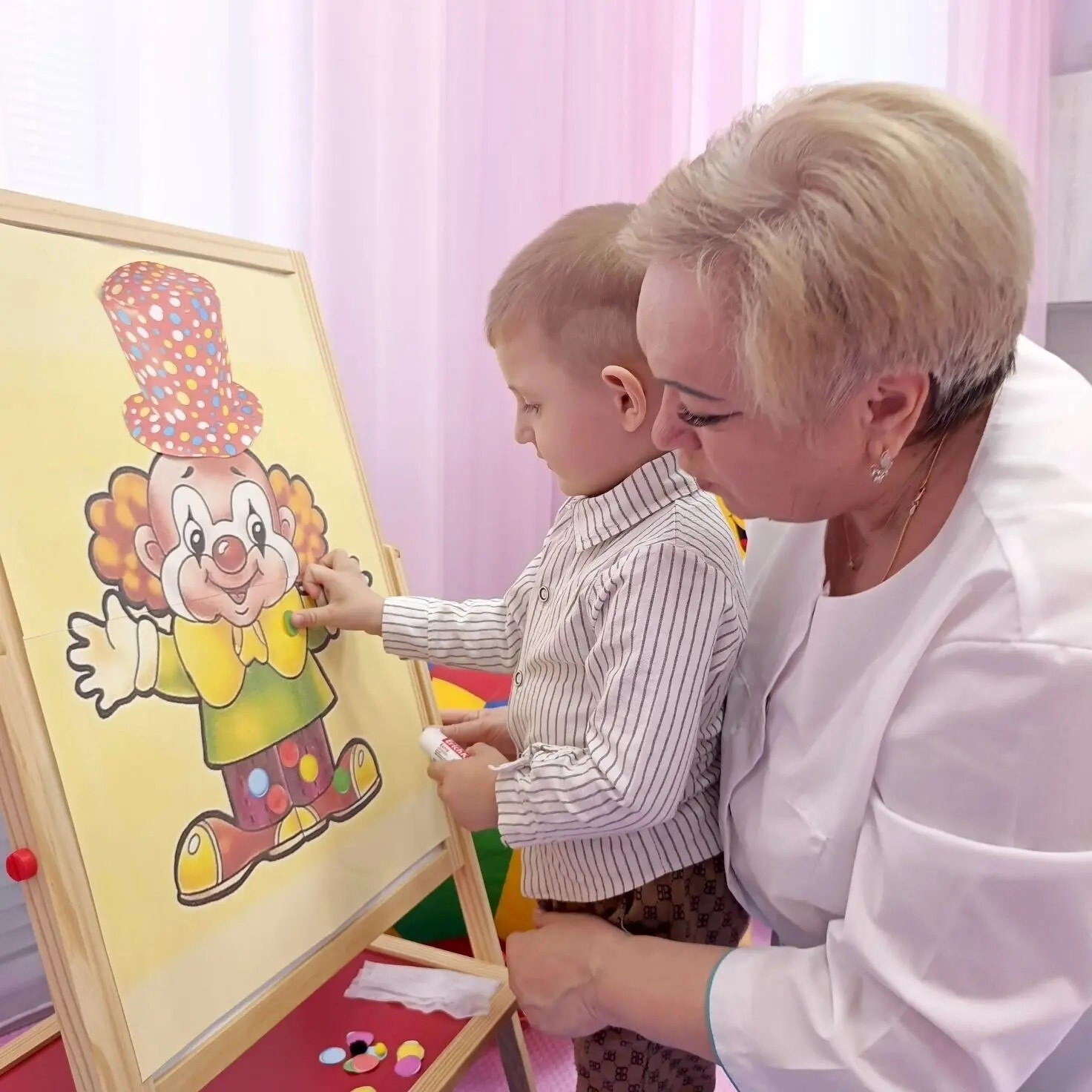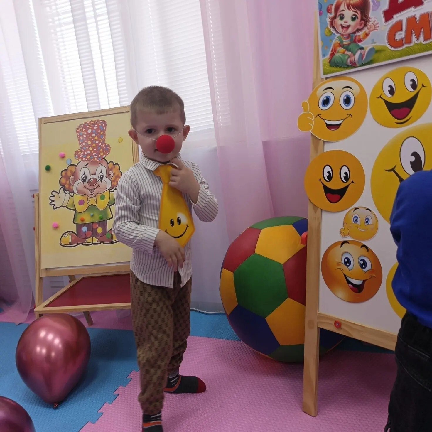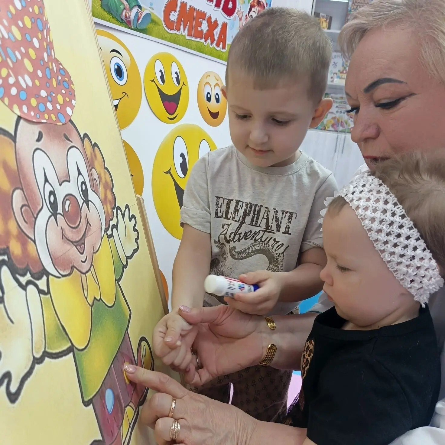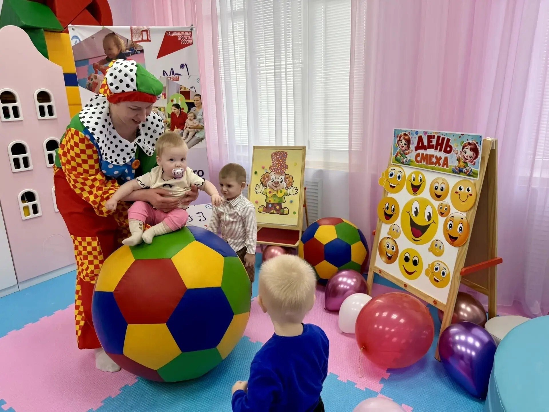 В группе кратковременного присмотра и ухода за детьми от рождения до 3-х лет Черемисиновского центра соцпомощи «Содействие», функционирующей при поддержке национального проекта «Семья», инициированного Президентом Российской Федерации В.В. Путиным, прошло занятие, посвященное Дню смеха.