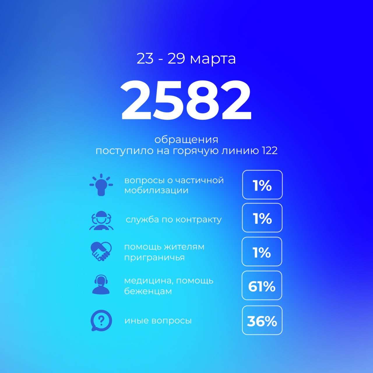 Всего за прошедшую неделю на «горячую линию» 122 поступило 2582 обращения.