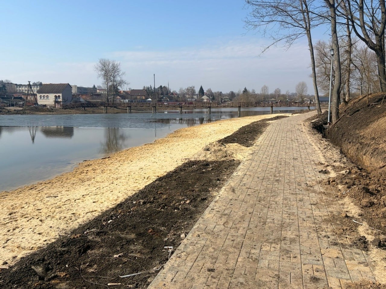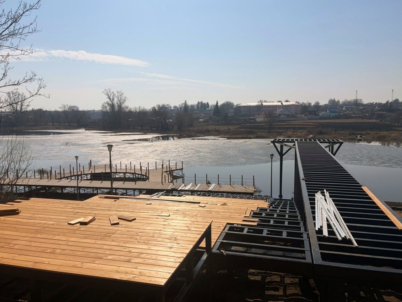 На объекте уже уложено покрытие из бетонной плитки и газонной решетки, установлены беседки и сцена, смонтировано наружное освещение, завершается монтаж смотровой площадки. Также приводят в порядок пляж и набережную. Завершить первый этап благоустройства планируется до конца апреля. #ЖКХ46 #комфортнаясреда #Медвенский